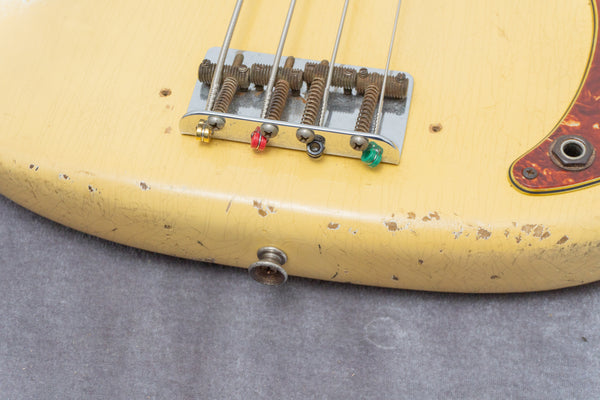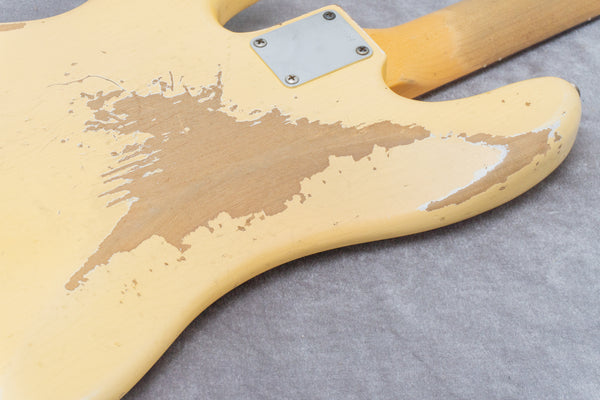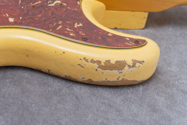 The body and finish show scratches and dents, but due to the relic finish, it's impossible to determine if these are post-production marks.