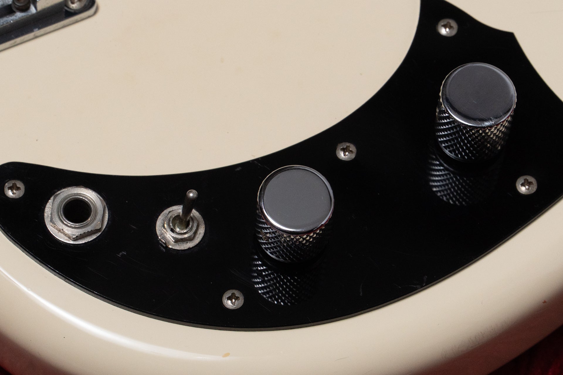 A series/parallel switch has been added. Both pots have been replaced. The cavity has been coated with conductive paint.
