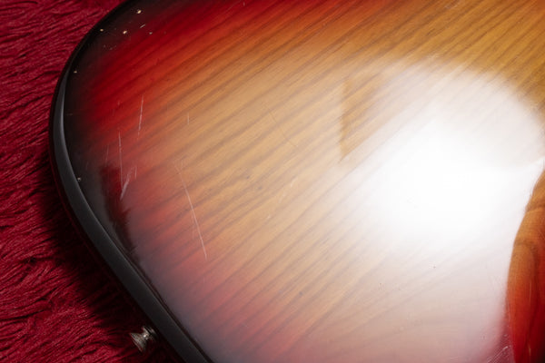 The refret and the nut have been replaced accordingly. The volume pot has been replaced with a CTS one. Some of the wiring may have been replaced due to the quality of the solder on the pickup lead wires. Shielded with silver foil tape.