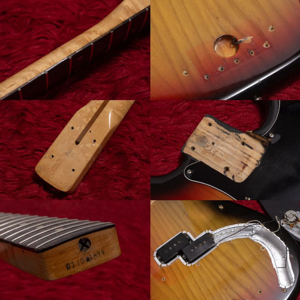 The condition of the neck shows symptoms of a high. Currently, it can be played on 12F with string height of 2.2 to 2.7mm without any problems. There are repair marks for cracks in the wood around the 1st string bushing, which can be visually confirmed and the quality of the work itself is not high, but there are currently no performance problems. Perhaps that's why the head has been repainted. There is a repair history of a crack in the fingerboard caused by a refret near the 10th fret and 4th string.The work has been done to make it very inconspicuous and the quality is high. Currently there are no problems with normal performance.