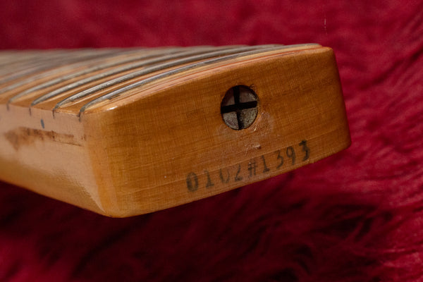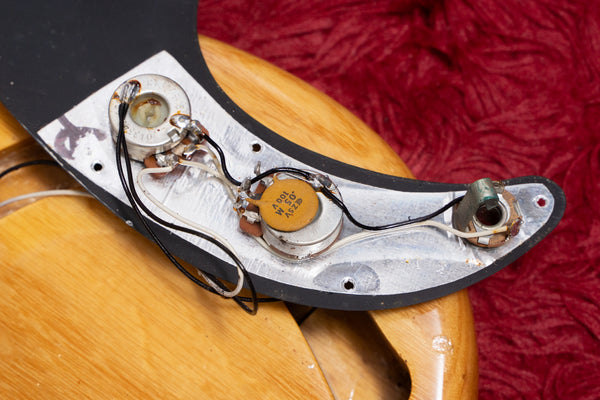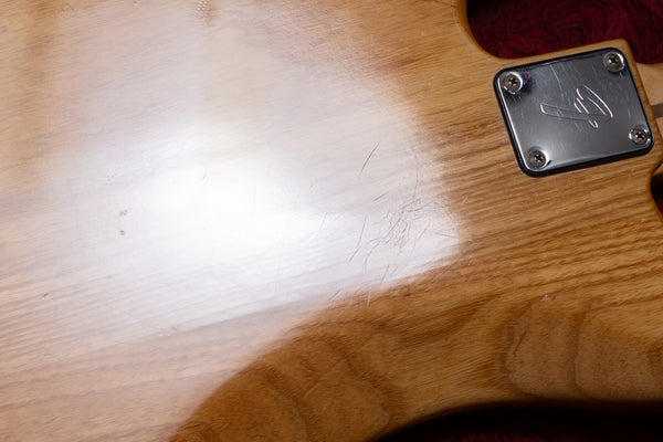The body is ash and the fingerboard is maple, a classic '70s configuration.
