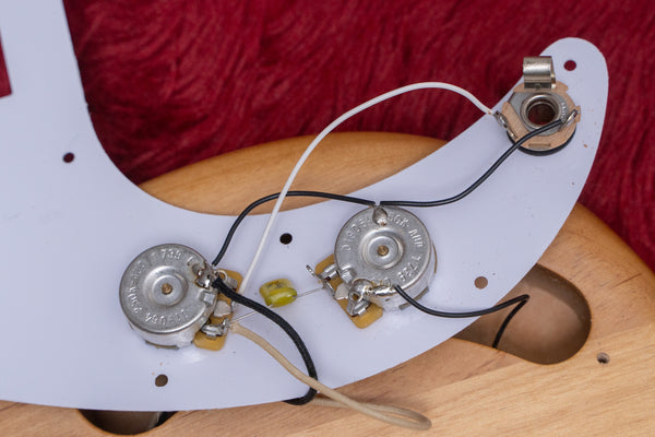 The body is made of Alder with a natural color and smooth satin finish.