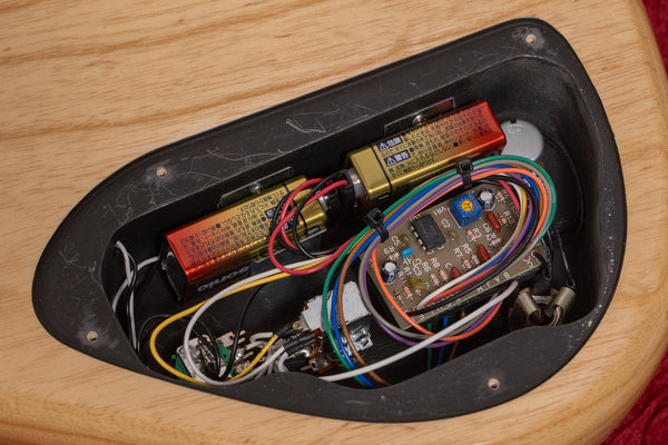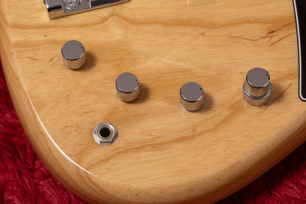 Controls: Neck PU volume/master tone, bridge PU volume (push/pull - active/passive), treble, bass, preamp gain (in cavity)