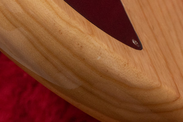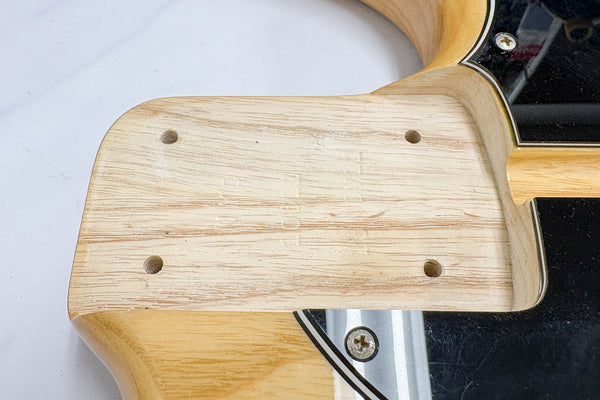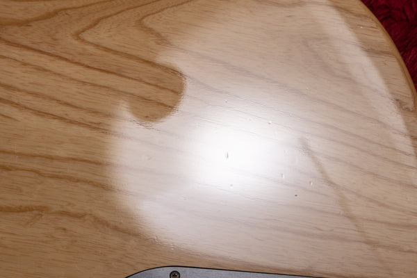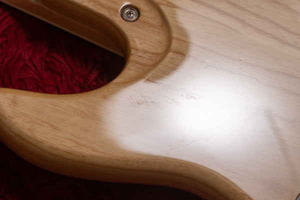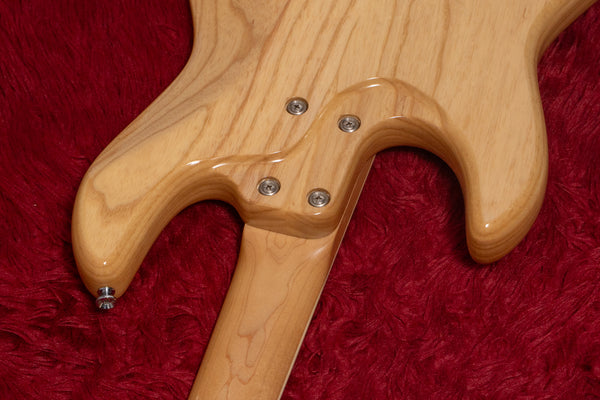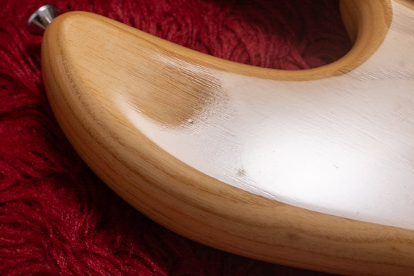 The body is made of ash and the fingerboard is maple, a classic configuration.