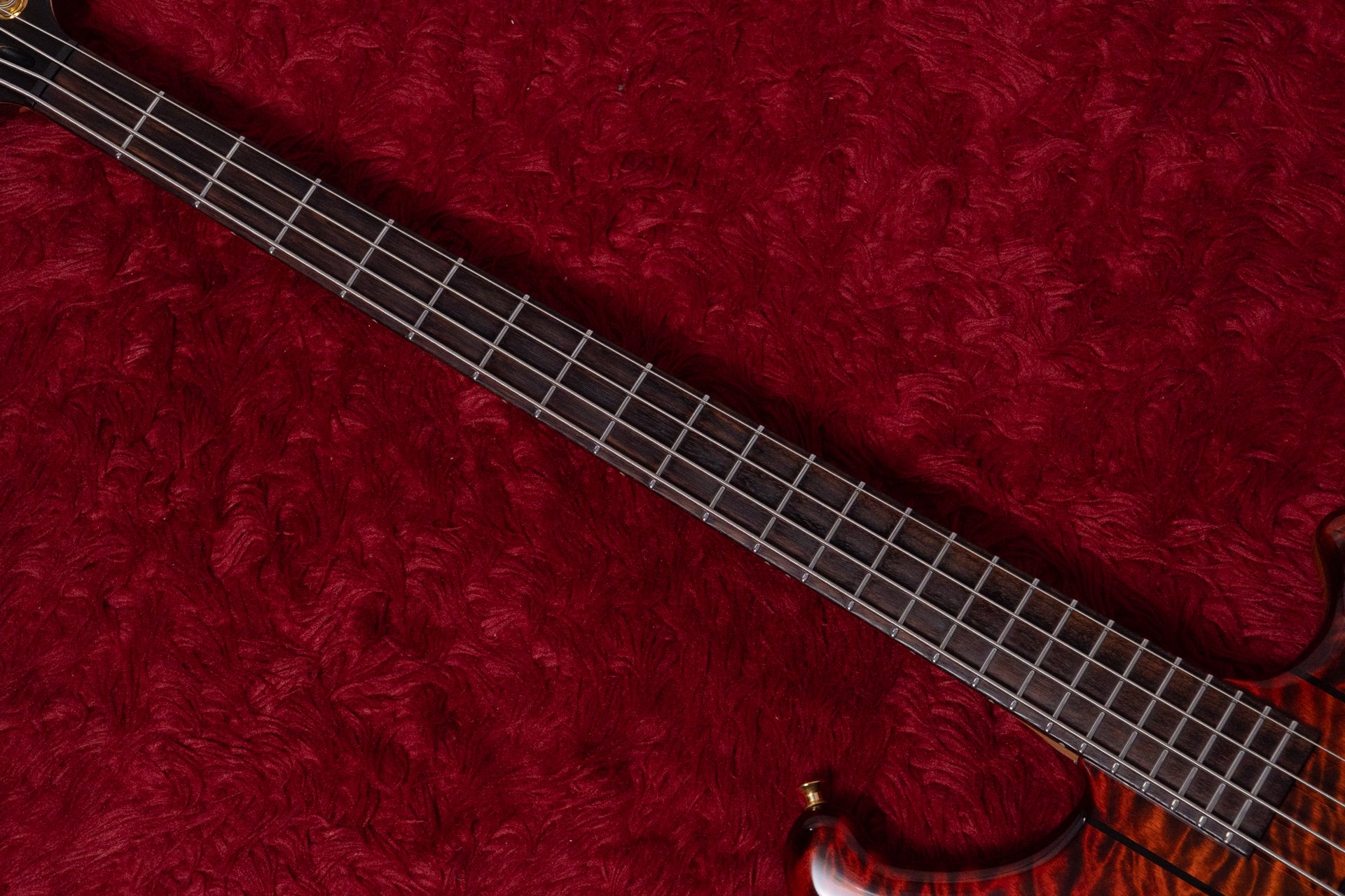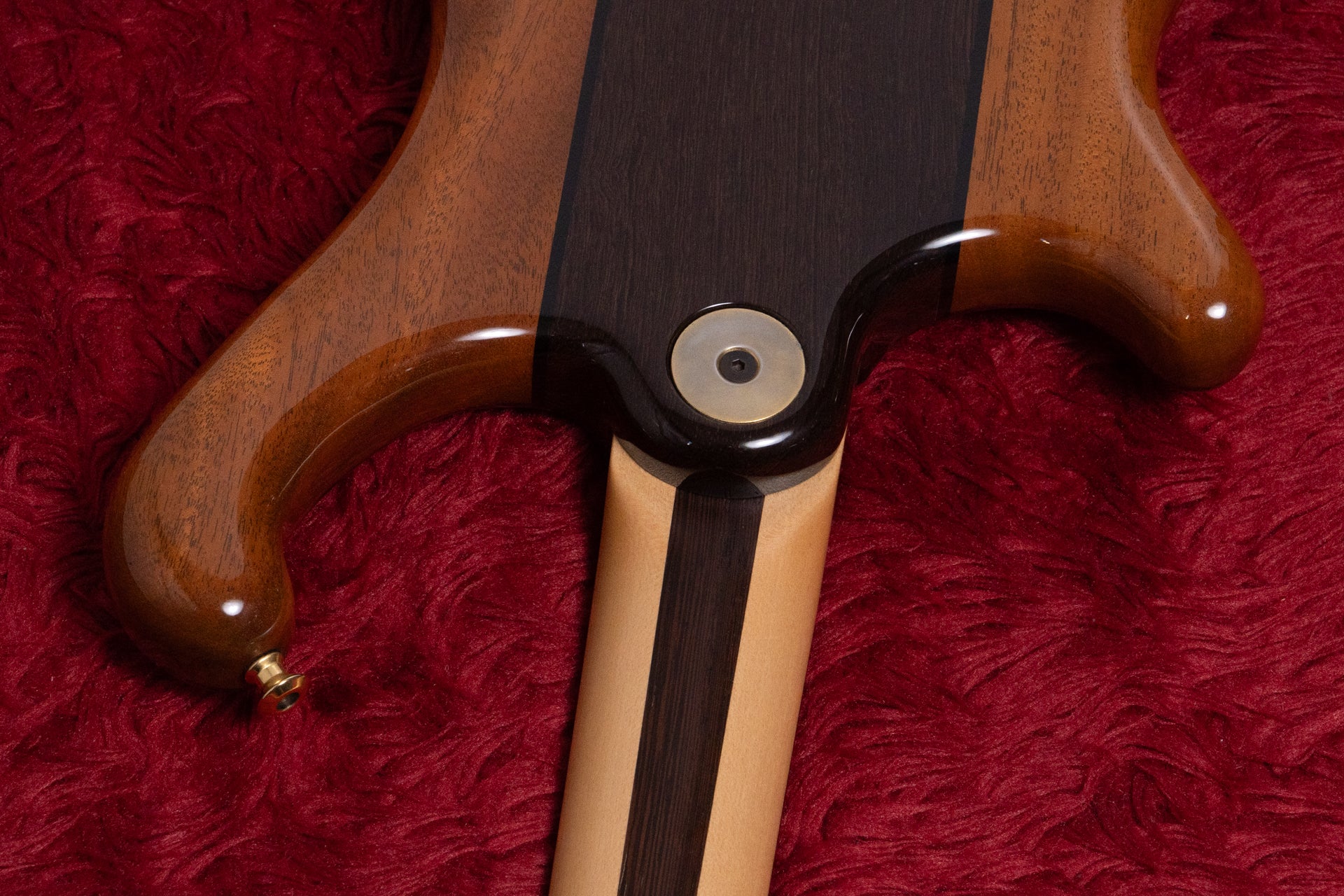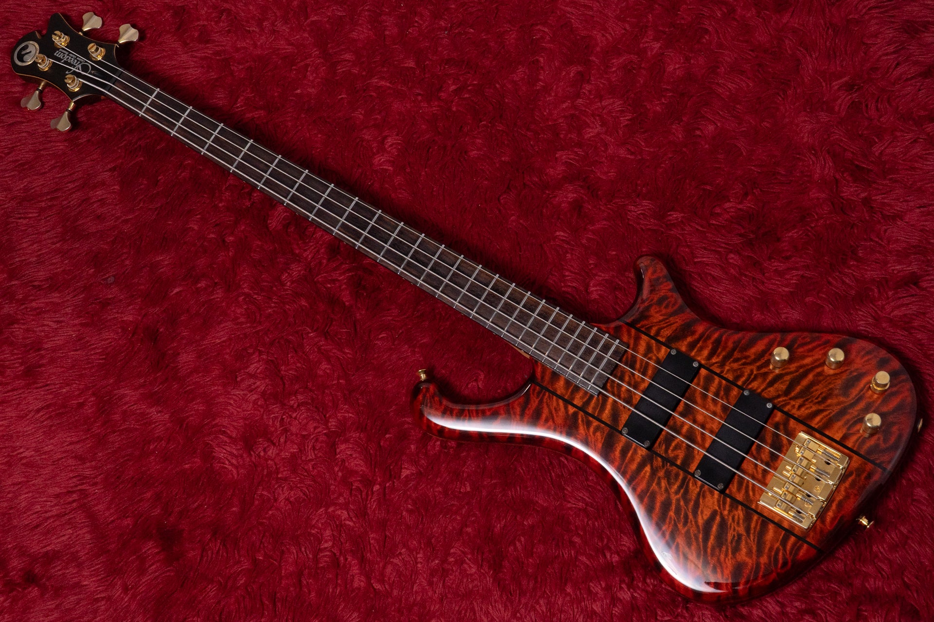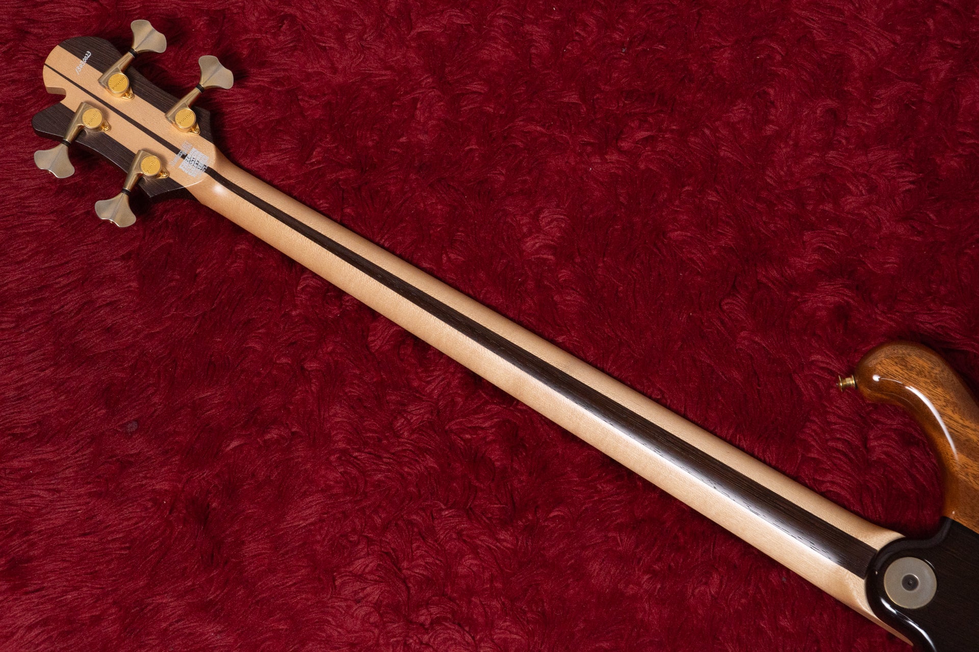 The neck is a 3-ply laminate of maple and wenge, and the fingerboard is Indian rosewood.