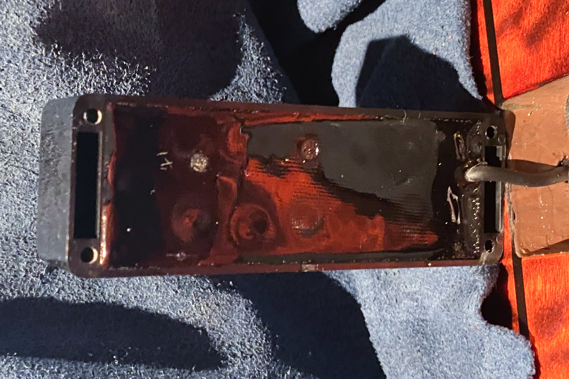 The body and finish show scattered scratches and dents. There are scratches on the pickup cover that appear to have been caused by picking.