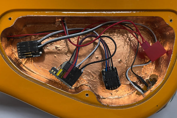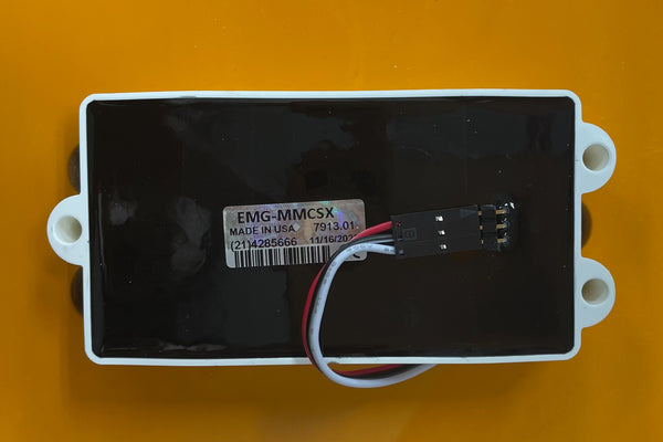 The PU is an EMG MMCS X in the bridge, and the preamp is also an EMG BTS.
