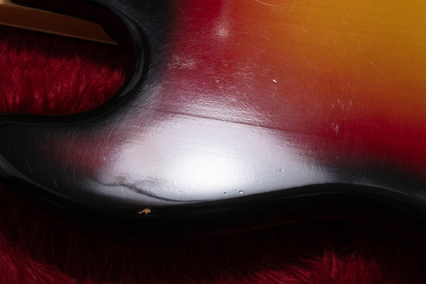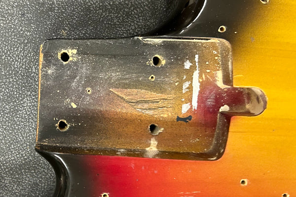 The body and paint show scratches and dents, and show signs of use. There are screw hole marks where a pickup fence may have been attached.