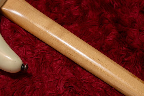 The neck is a maple 3P laminate neck and the fingerboard is rosewood.