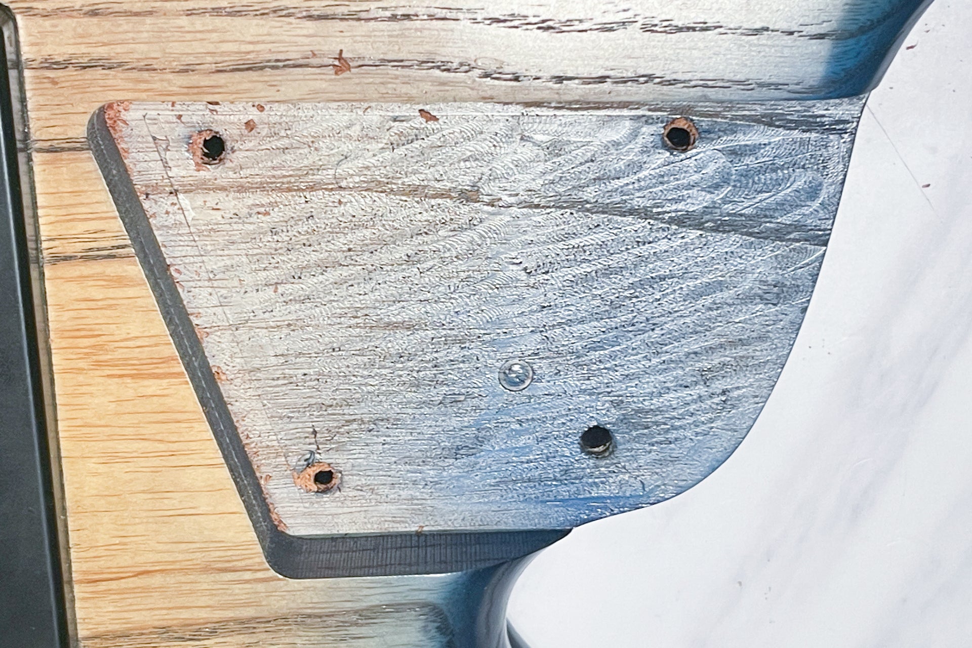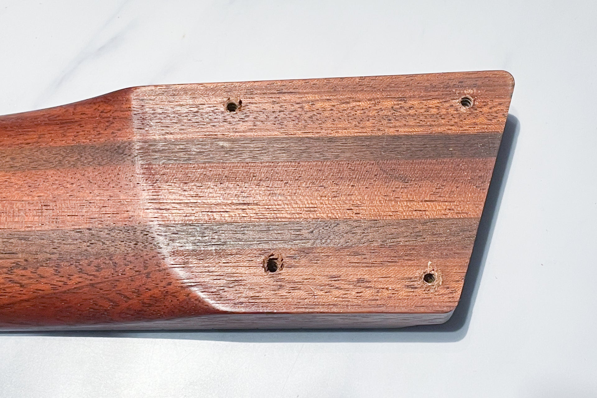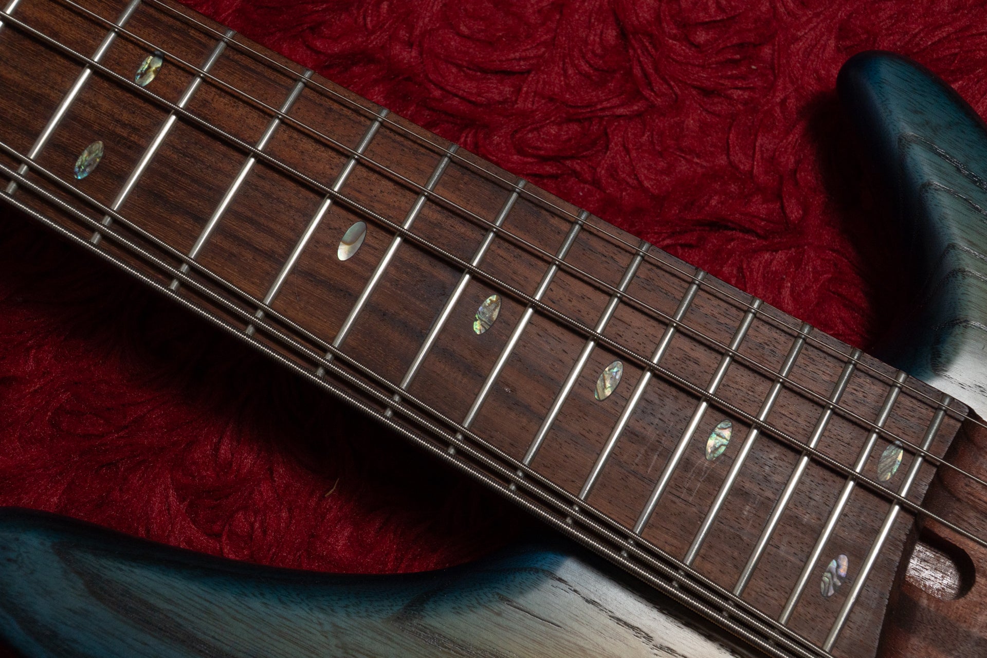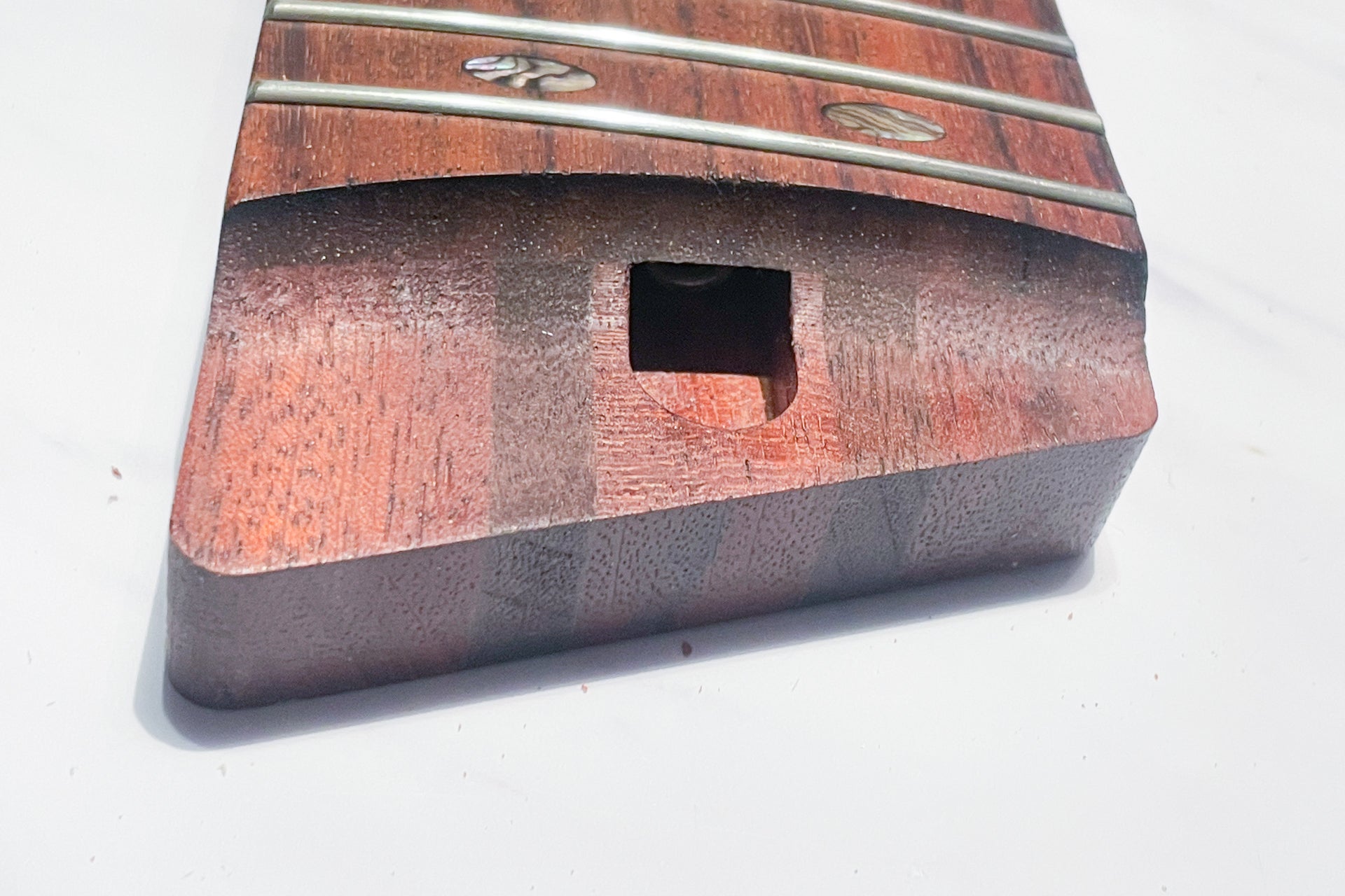 The neck is a 5-ply laminate made of Jatoba and walnut.