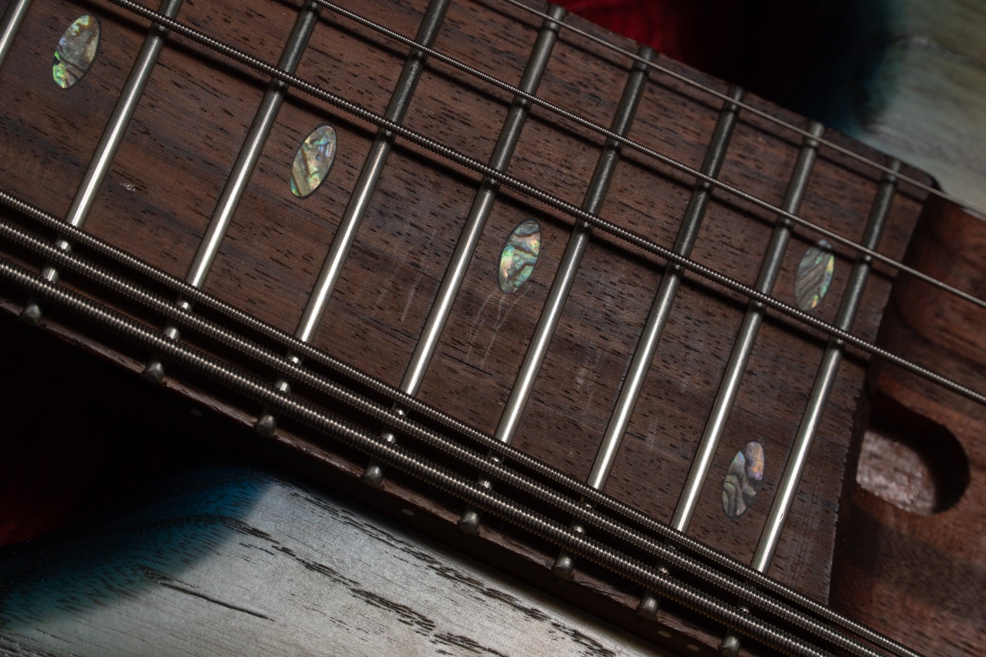 This guitar was set up using Pitbull Strings, which we import and sell.