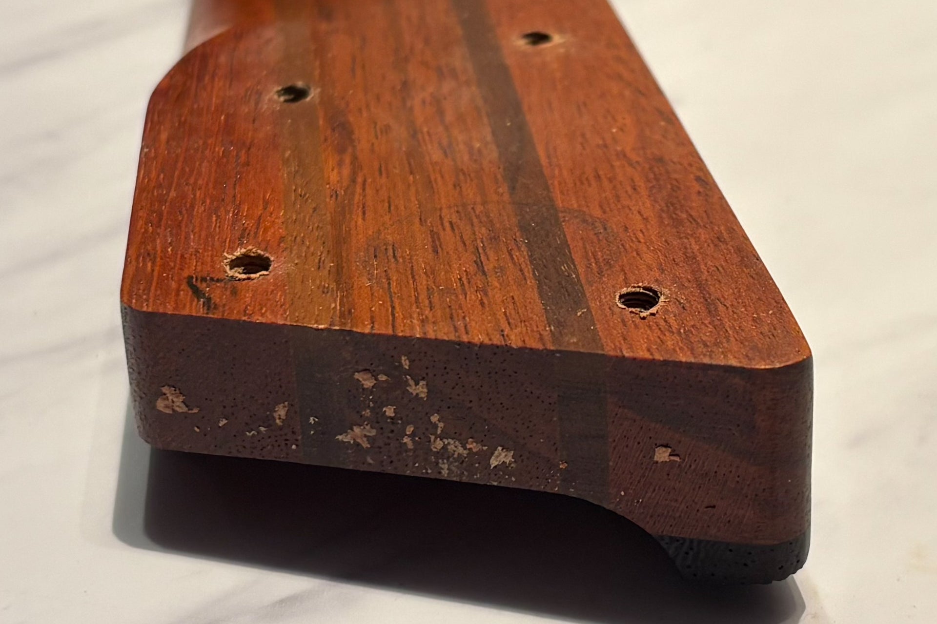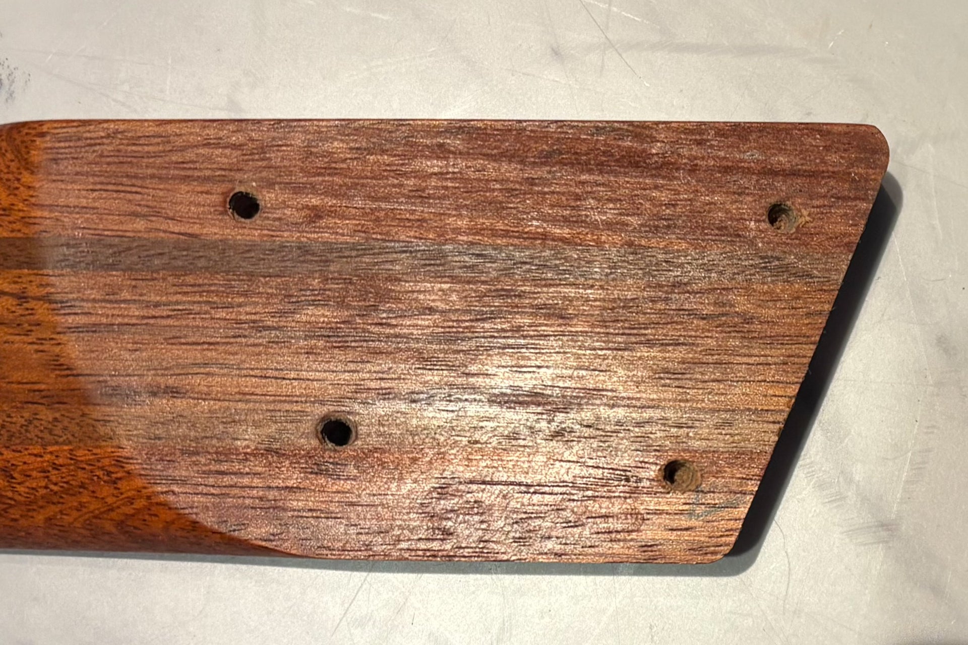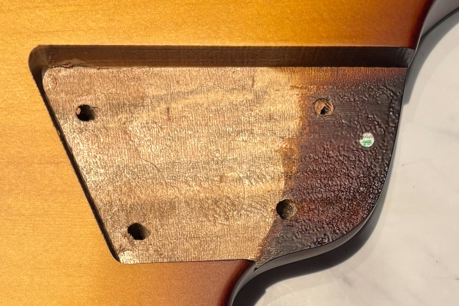 The neck exhibits some forward bowing on the 1st string side. A shim has been inserted to adjust the G string saddle to 2.3-3.1mm, 0.5mm higher than the GIB standard at the 12th fret.
