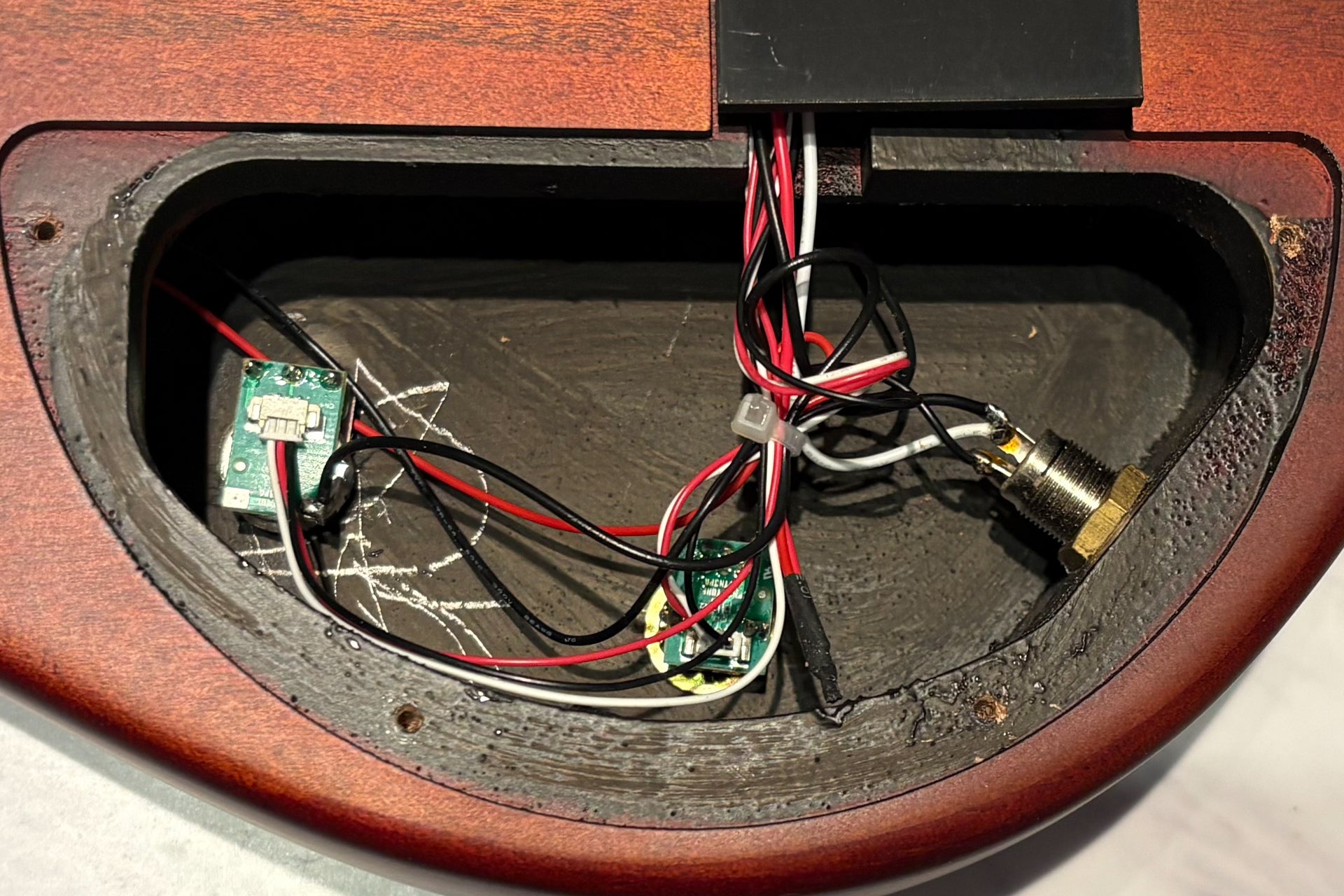 Controls: Volume, Tone, Rear trim pot for individual string gain