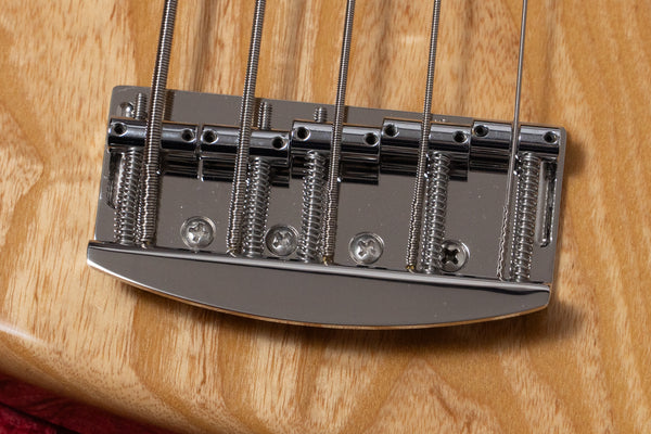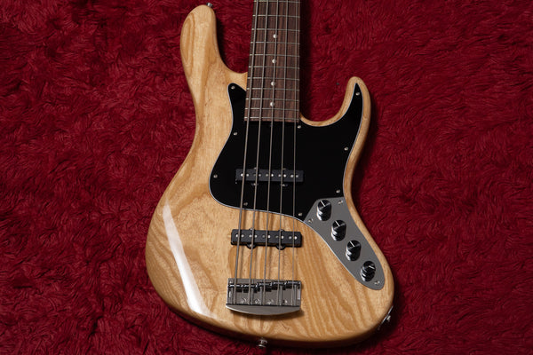 While the RV5 often features an alder body and rosewood fingerboard, this one features an ash body and rosewood fingerboard.