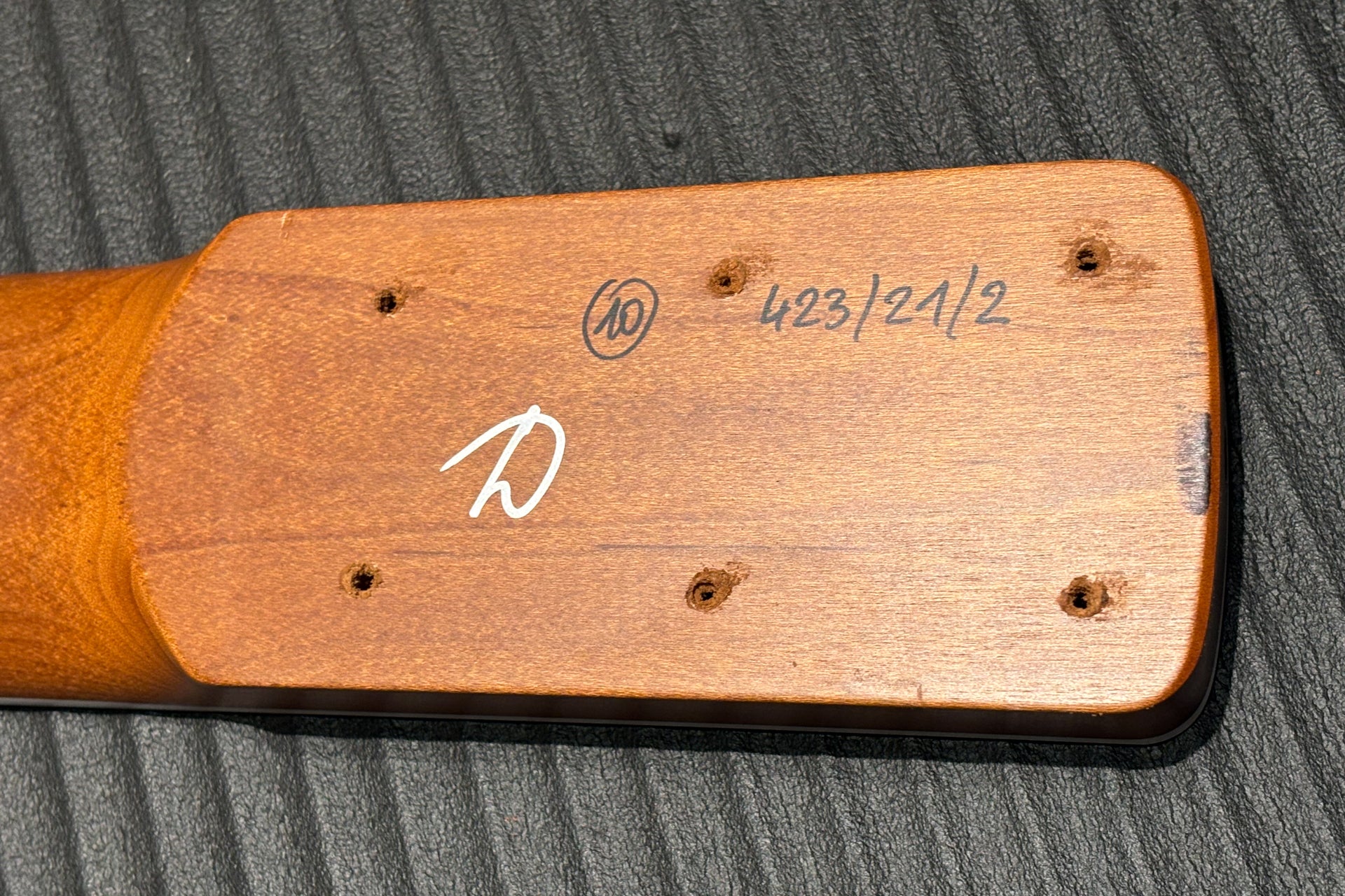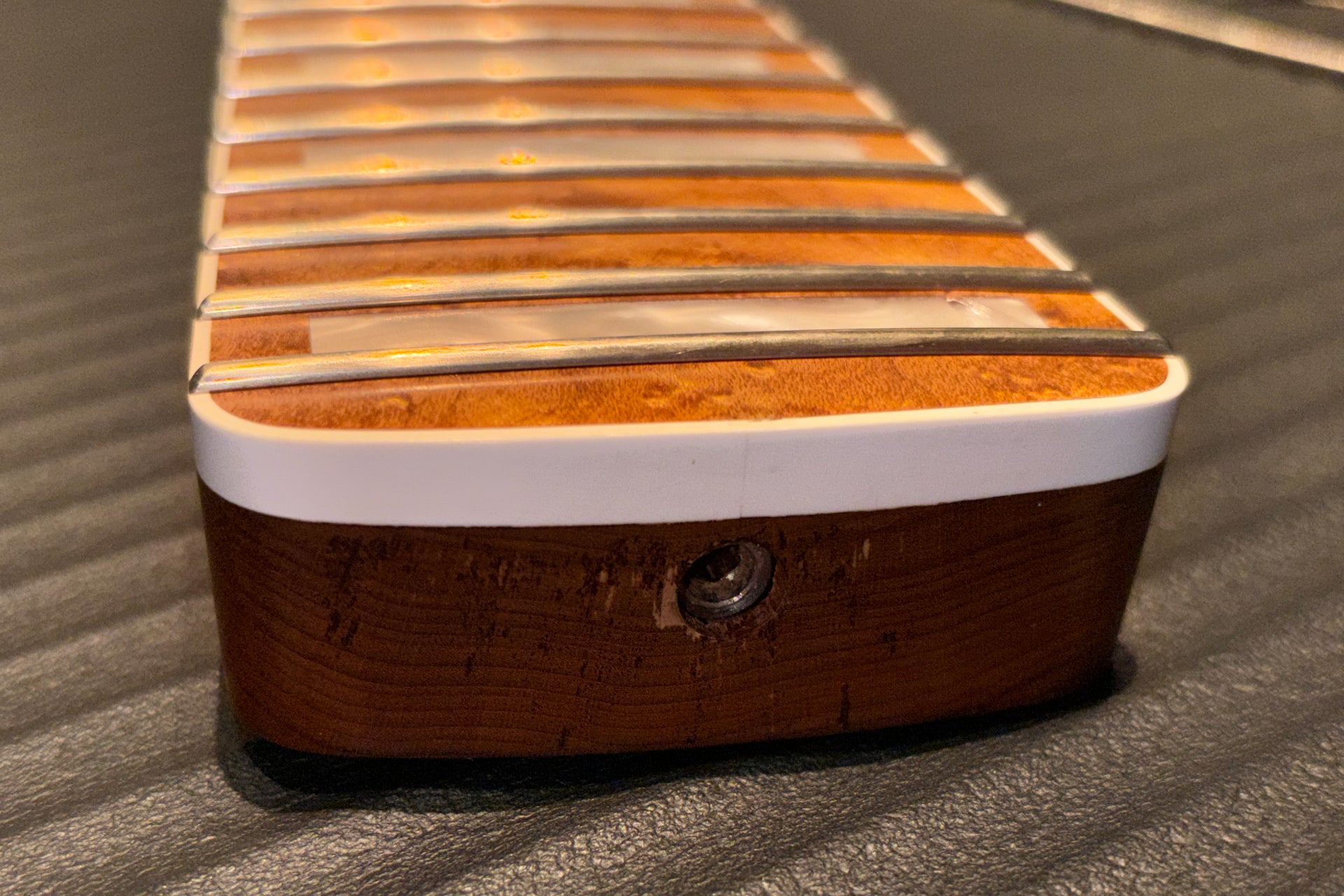 The inlay at the 24th fret and the fingerboard are both chipped on the surface only.
