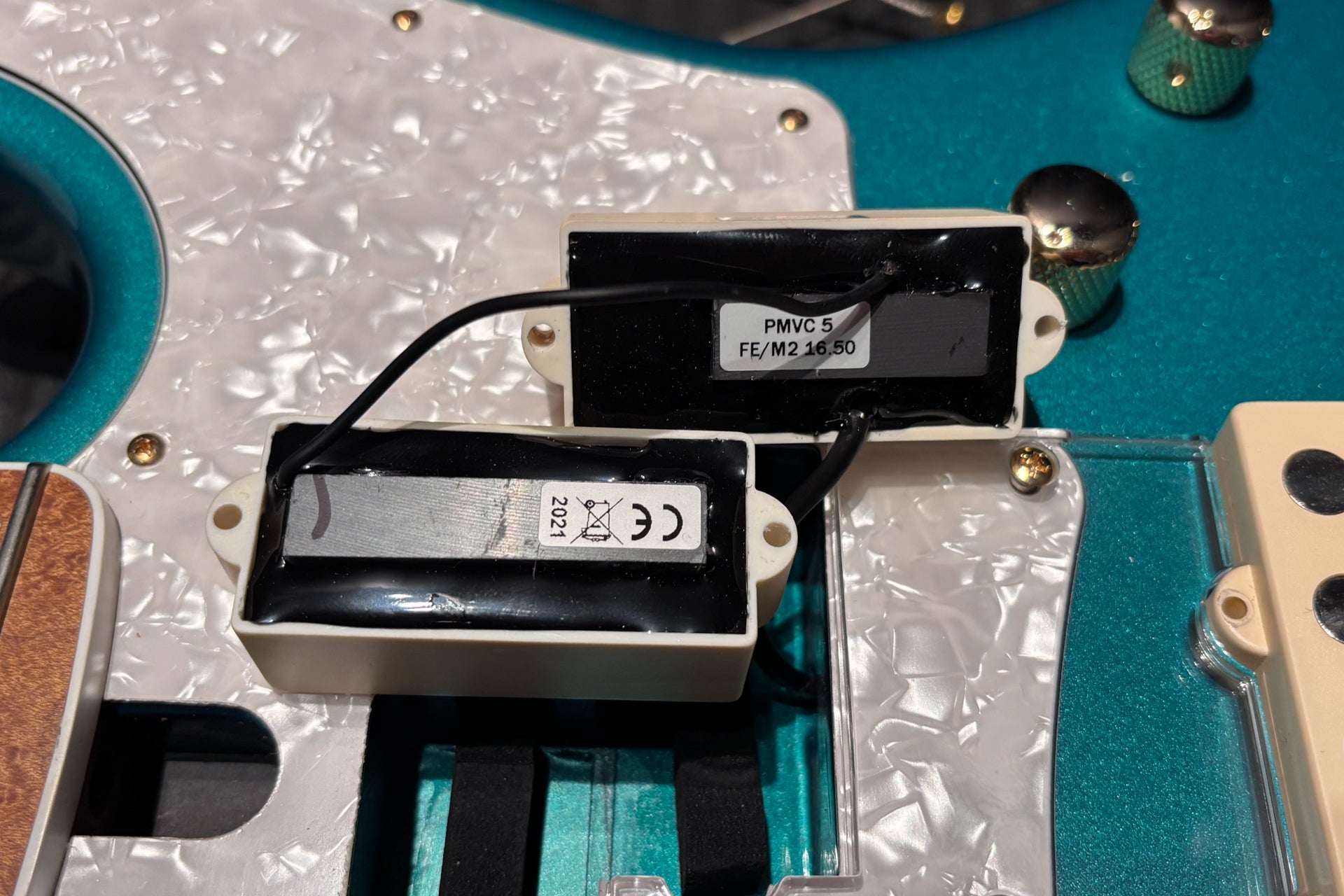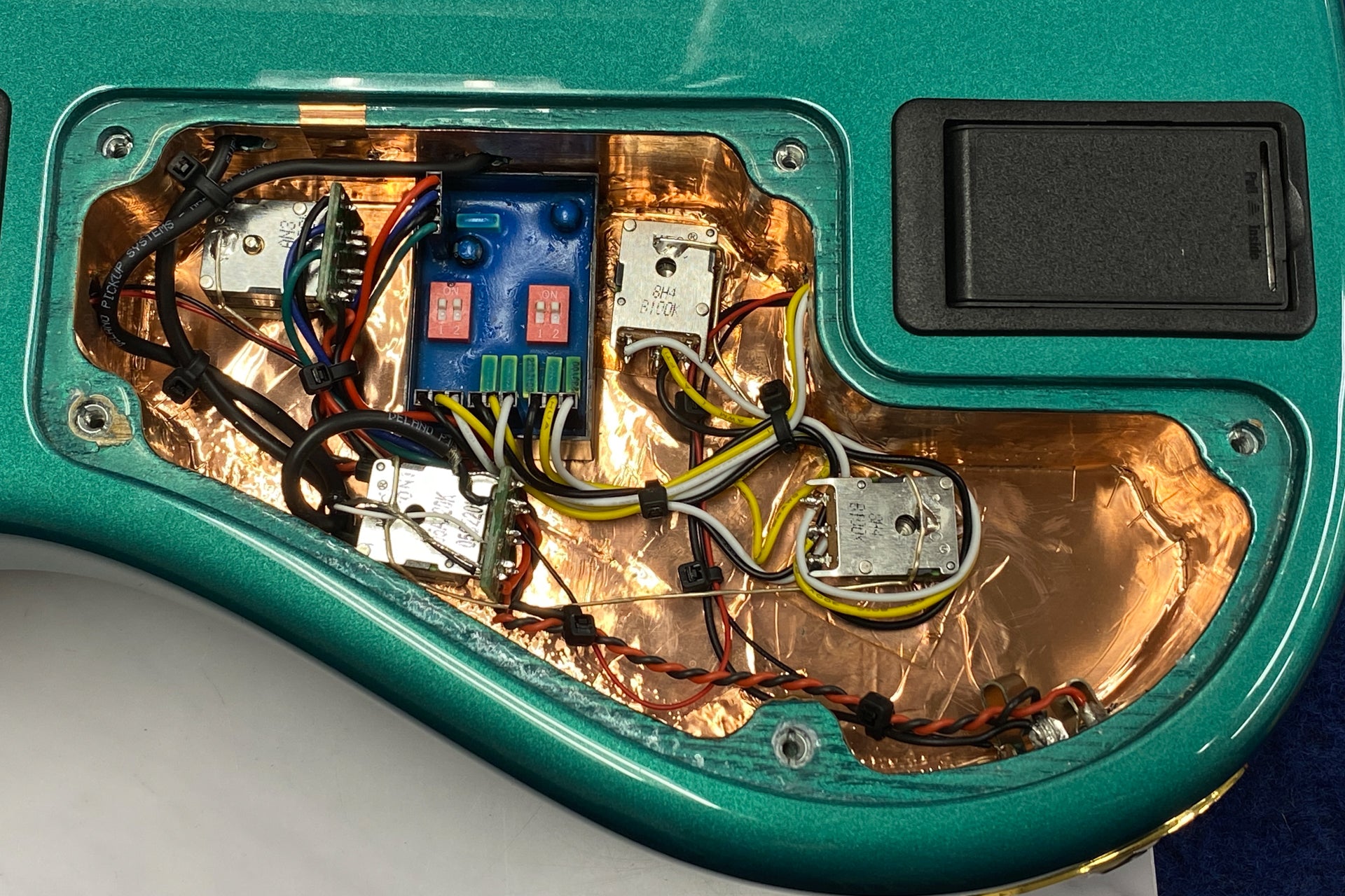 Controls: Master volume (push-pull, active-passive), balancer, middle, treble, bass, (inside the cavity) treble frequency switch, middle frequency switch, bass frequency switch
