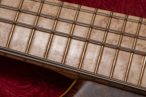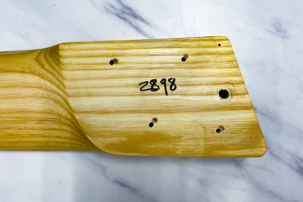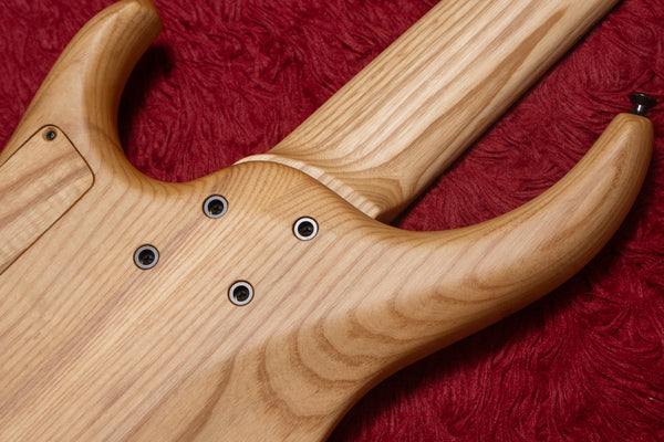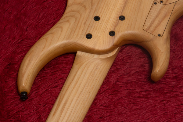 The body back is ash, the neck is ash, and the fingerboard is Bird's Eye Maple.