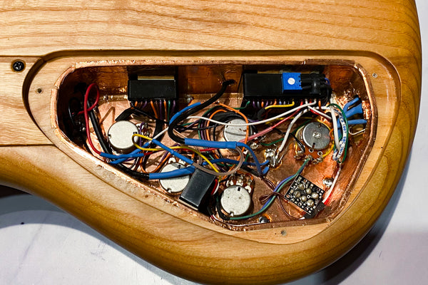 Controls: Master volume, balance, treble, middle, bass, 3-way middle frequency switch, preamp gain (inside cavity)