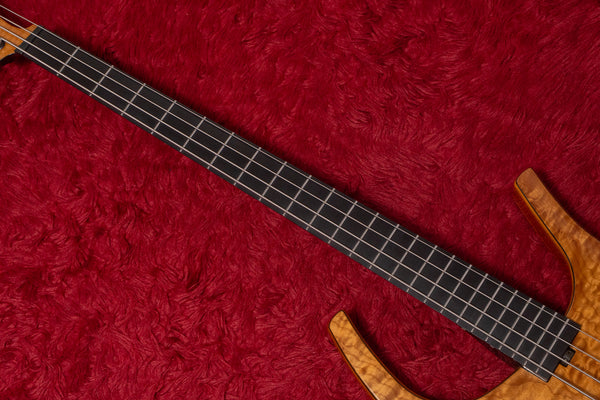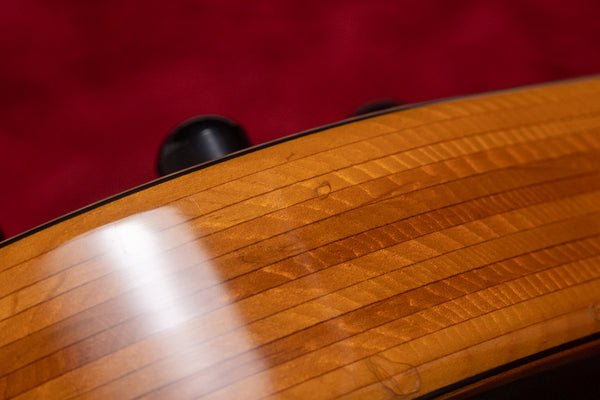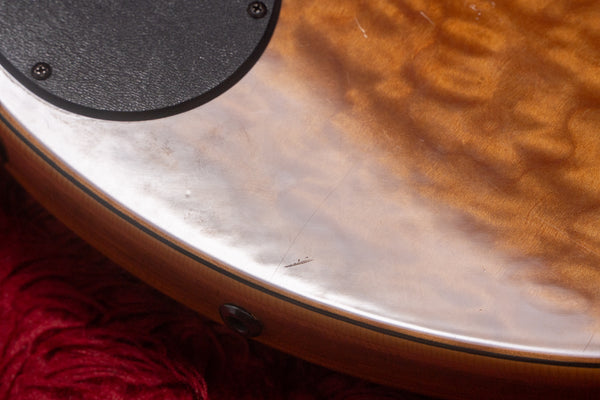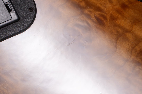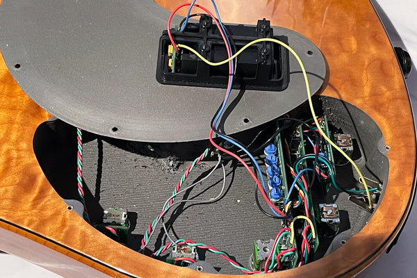 The piezo pickups have a trimmer inside the cavity that allows for adjustments to the overall gain, individual string gain, and low cut, allowing for a wide variety of sounds.