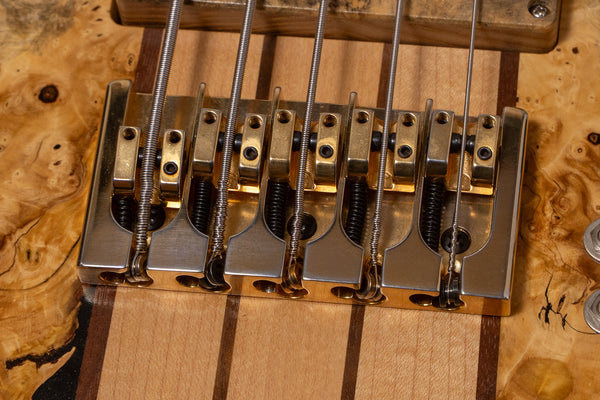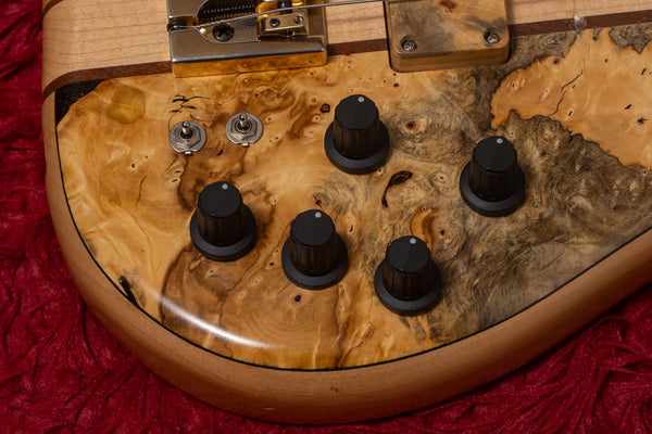 Controls: Master volume, balancer, bass, middle, treble, neck pickup series/tap/parallel switch, bridge pickup series/tap/parallel switch, in-cavity neck pickup gain, bridge pickup gain, notch filter