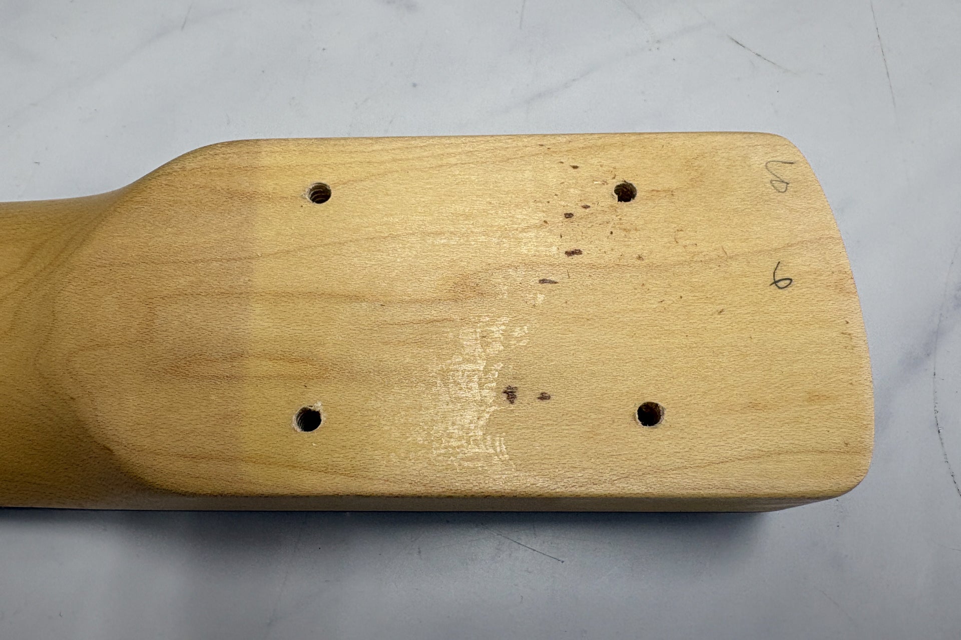 The neck is made of maple and the fingerboard is made of rosewood, a classic wood construction.