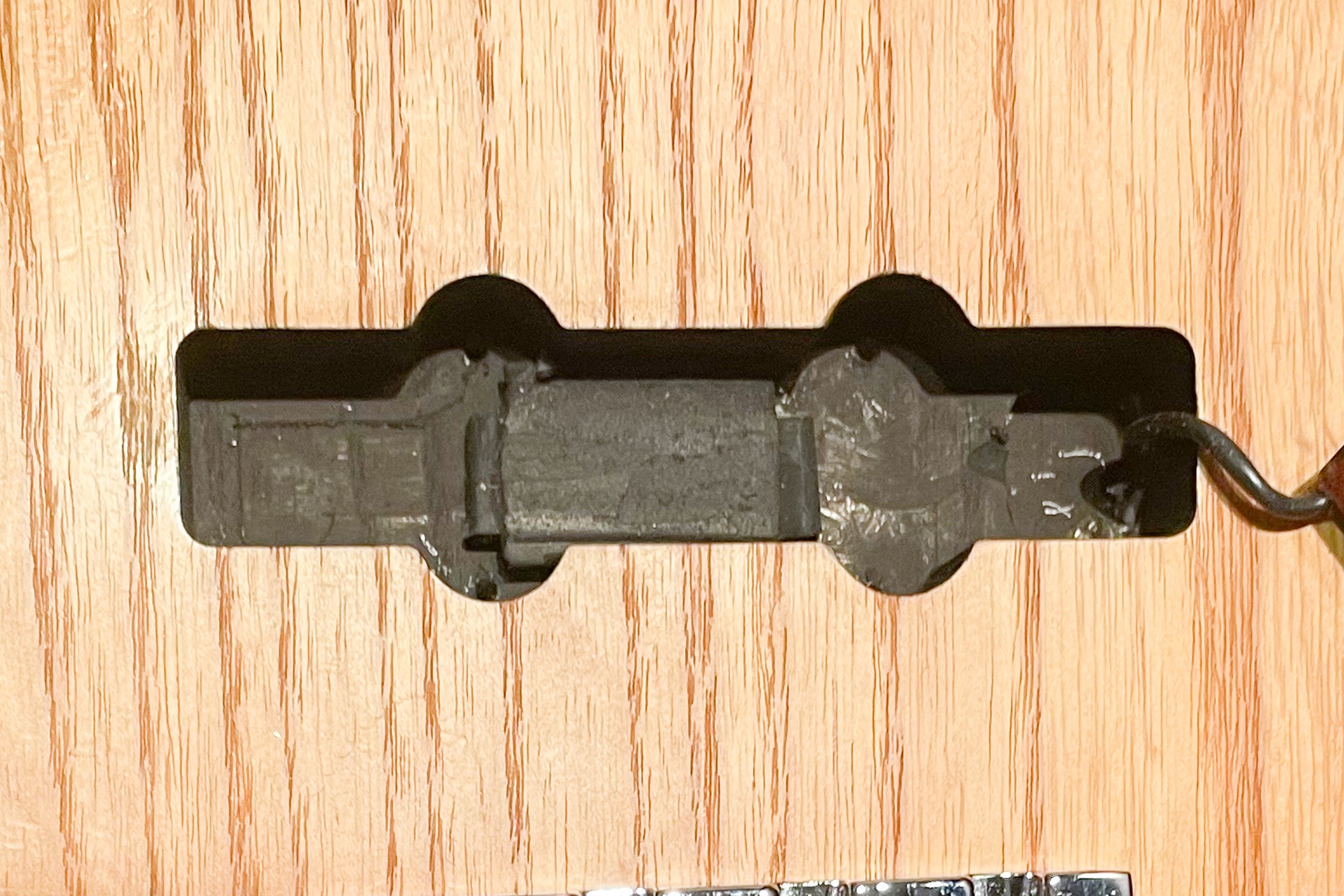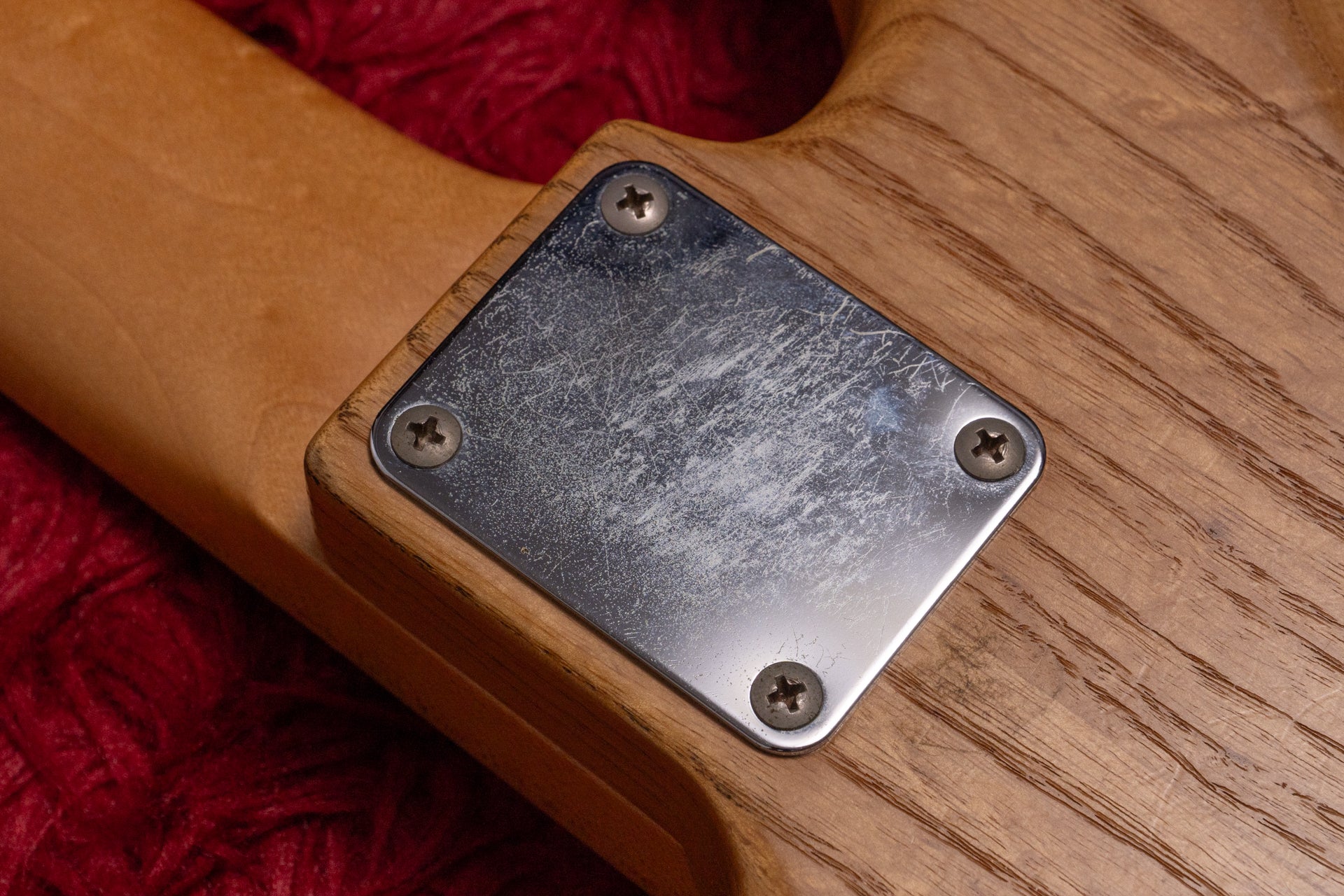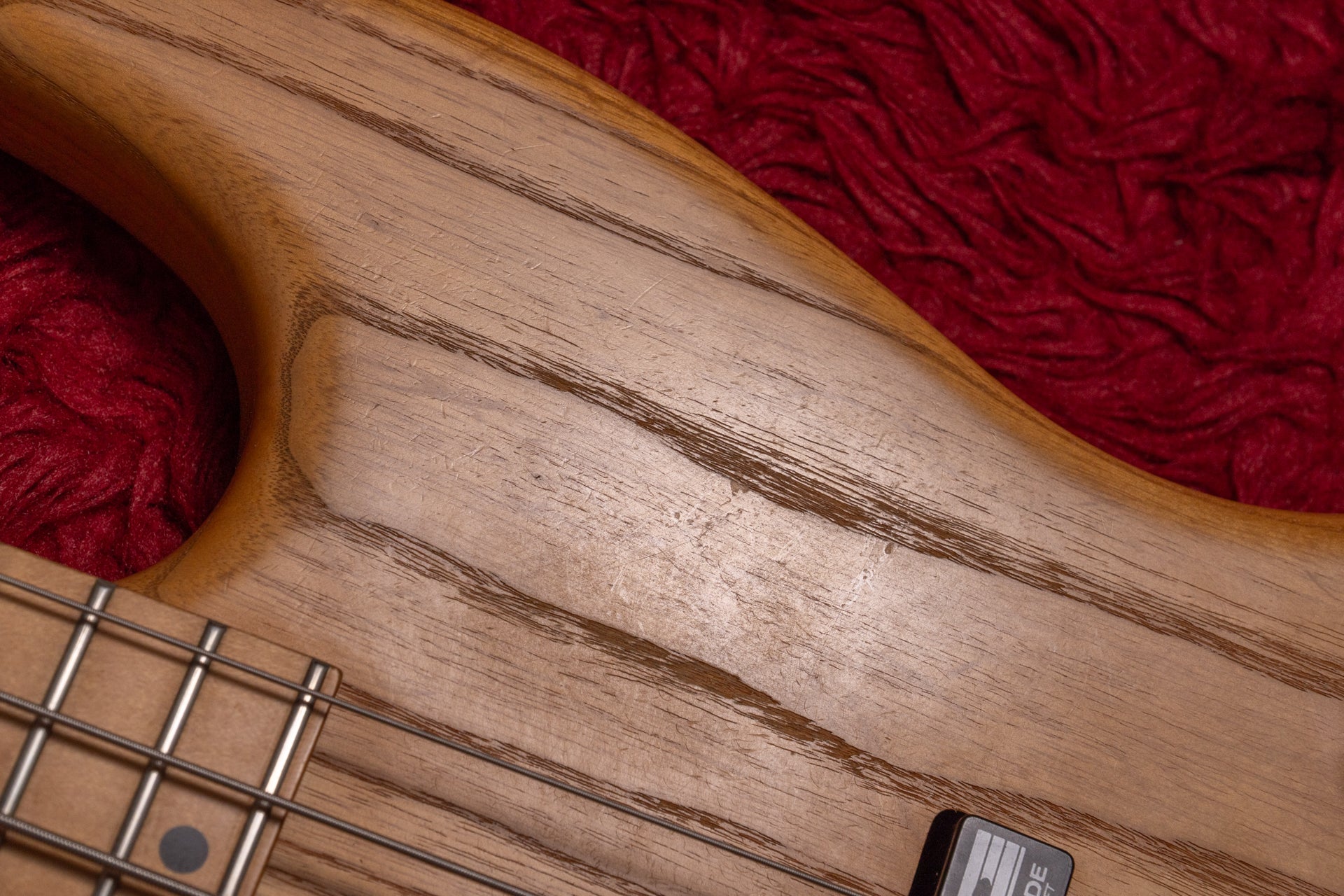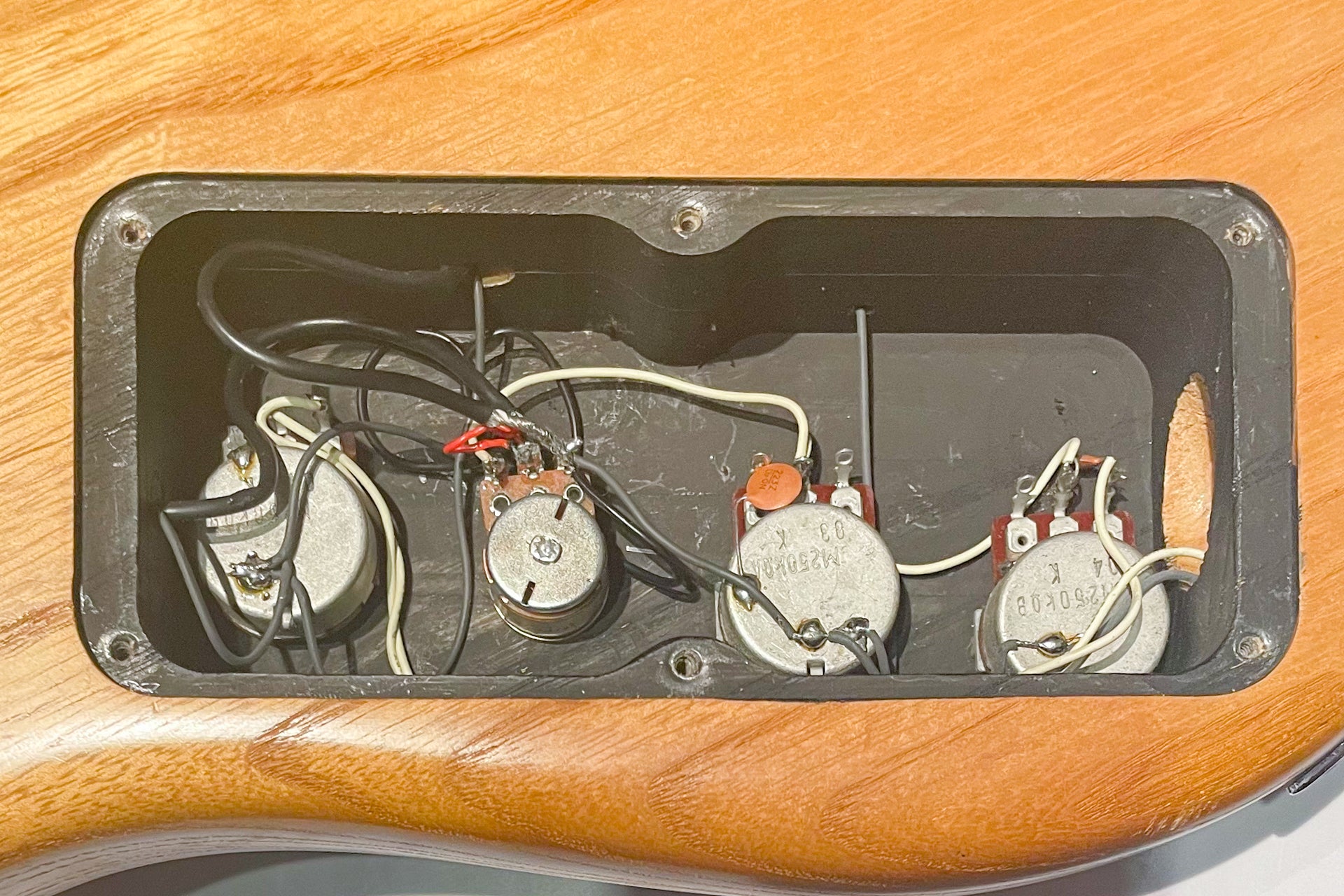 The stereo jack and the presence of solder marks on it suggest that this instrument was originally an active guitar.