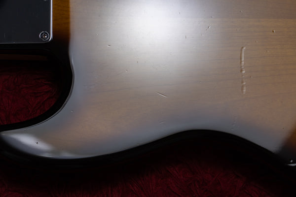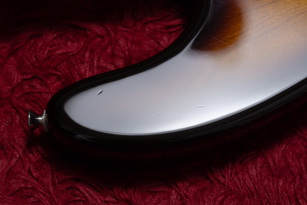 The body is made of alder, the fingerboard is rosewood, and the neck is maple, giving it a classic construction.