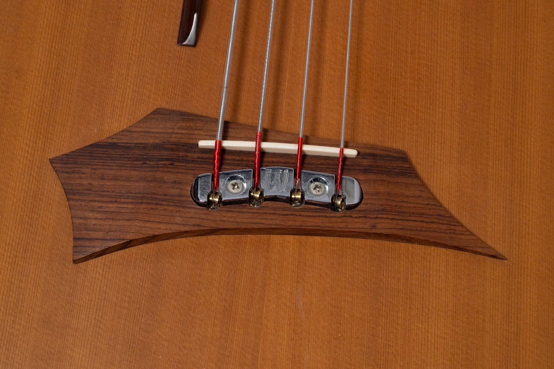 The body top is AAAA Sitka Spruce, and the body sides and back are Ovangkol.