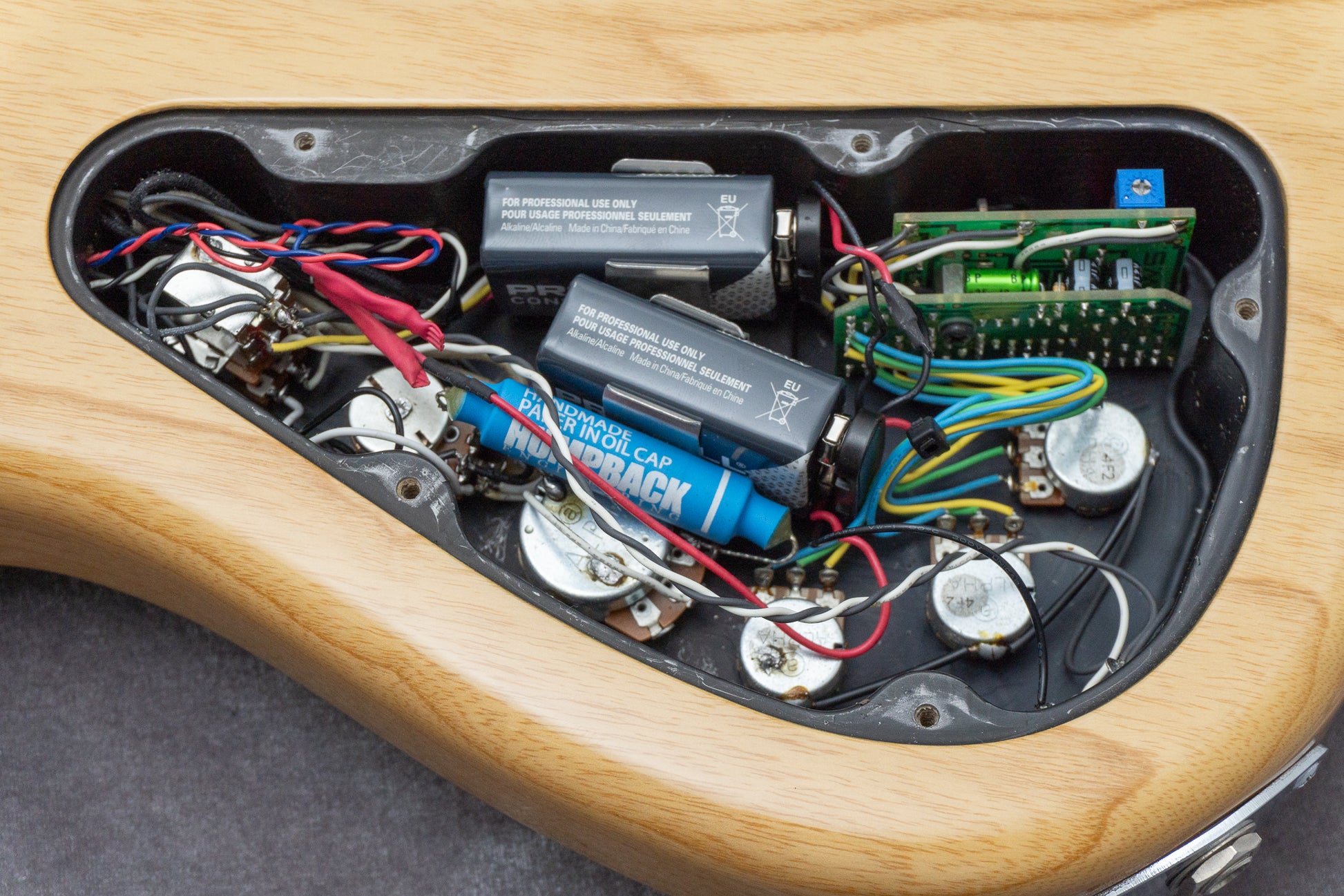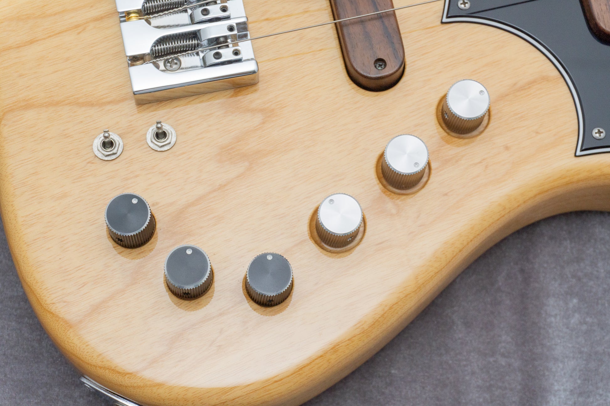 Controls : Master Volume (Push-Pull - Active Passive), Balancer, Master Tone, Bass, Middle, Treble, Middle Frequency Switch, Treble Frequency Switch, Preamp Gain (in cavity)