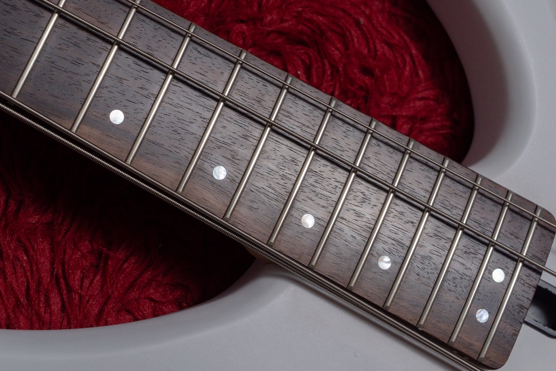 The fingerboard is likely Indonesian rosewood.