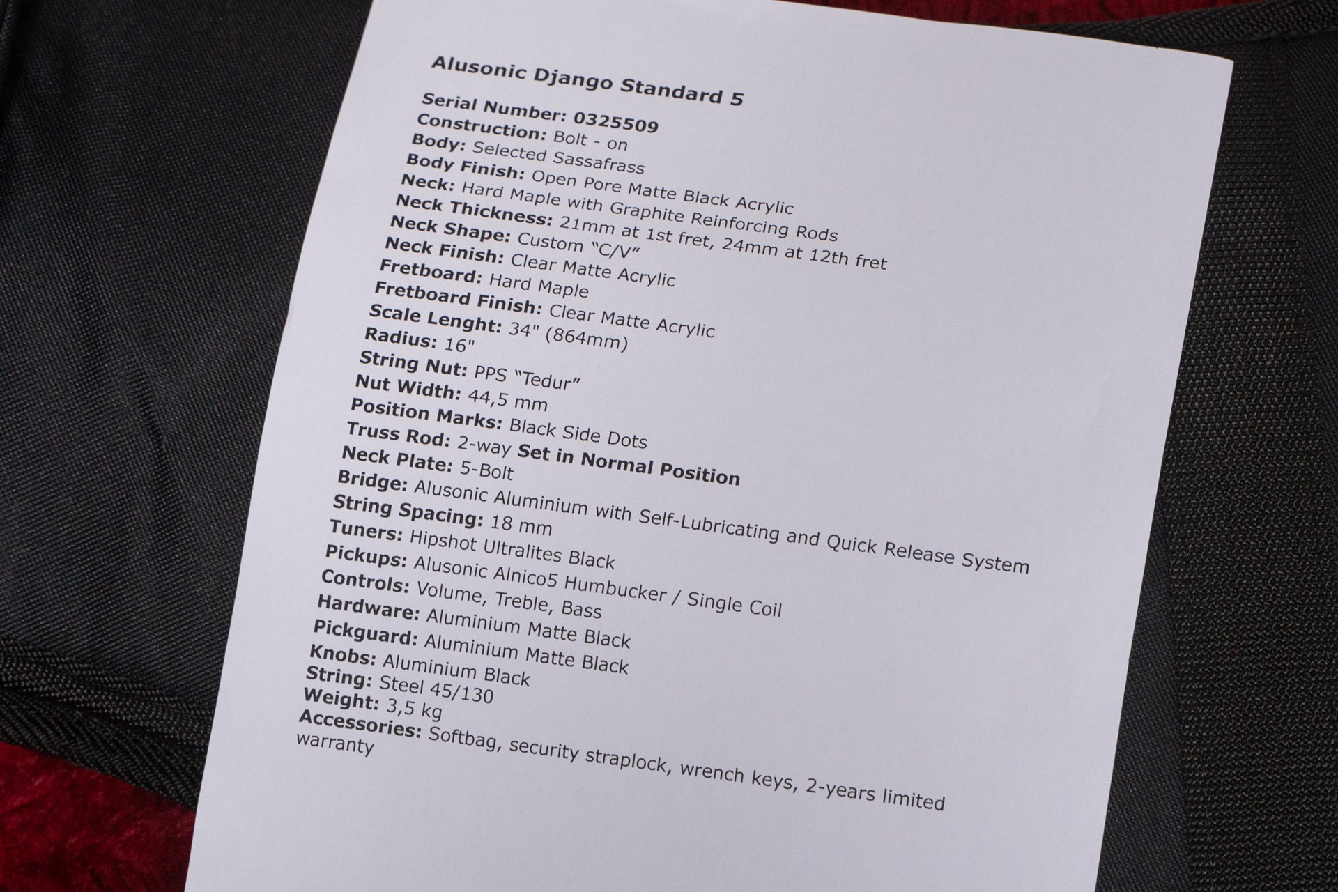 Accessories: Original gig bag, warranty card, instruction manual