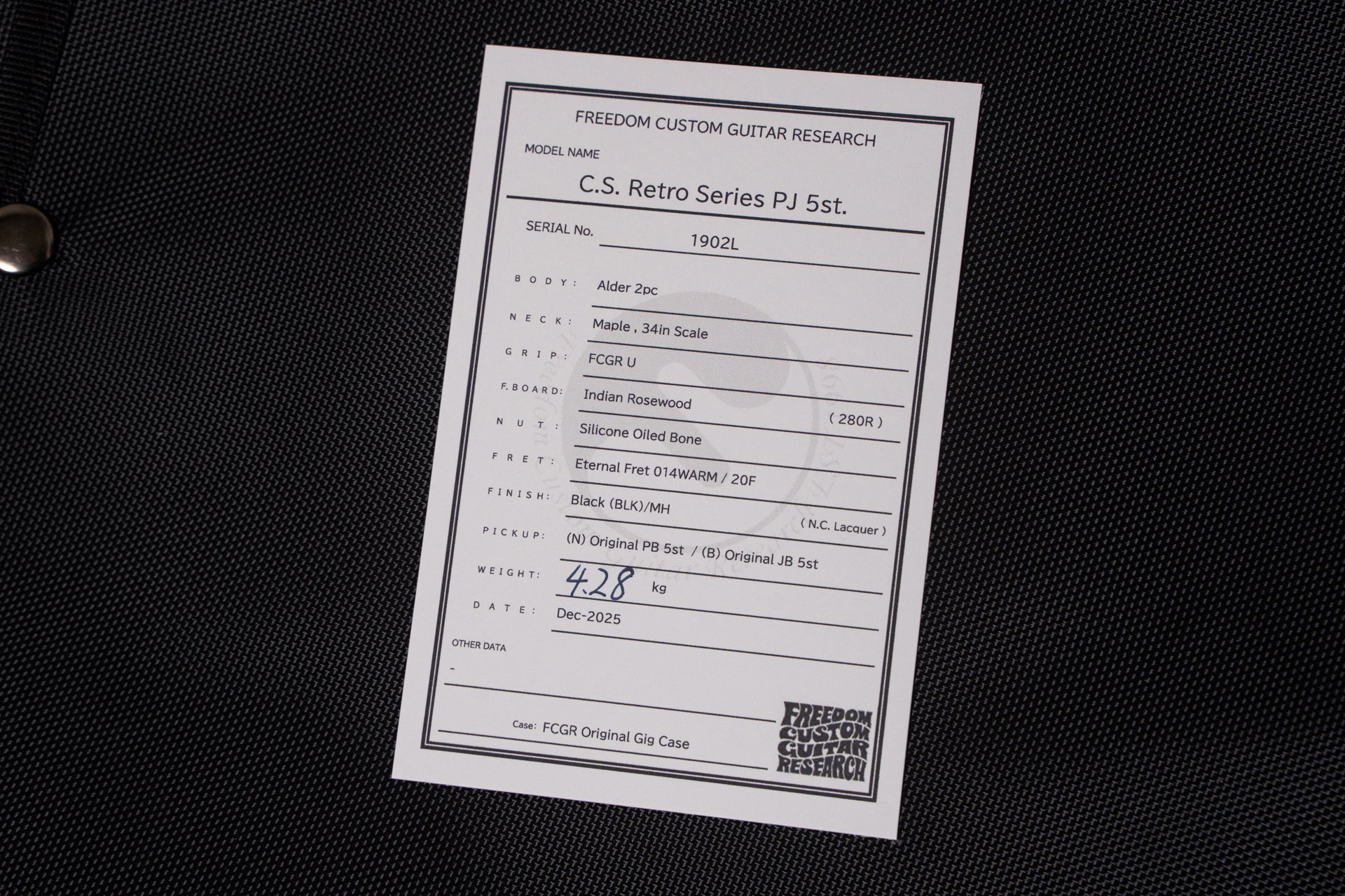 The bass was ordered in the classic configuration of an alder body and Indian rosewood fingerboard.