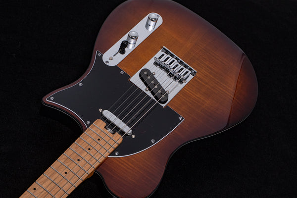 The T200 features a beautiful Flame Maple body top and incorporates advanced modern specifications like a compound radius fingerboard and a 6-saddle bridge.