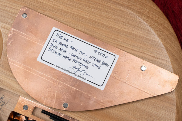 바디 뒷면은 챔버형 냐토로 제작되었으며 상단은 고품질 화염 단풍나무로 제작되었습니다.