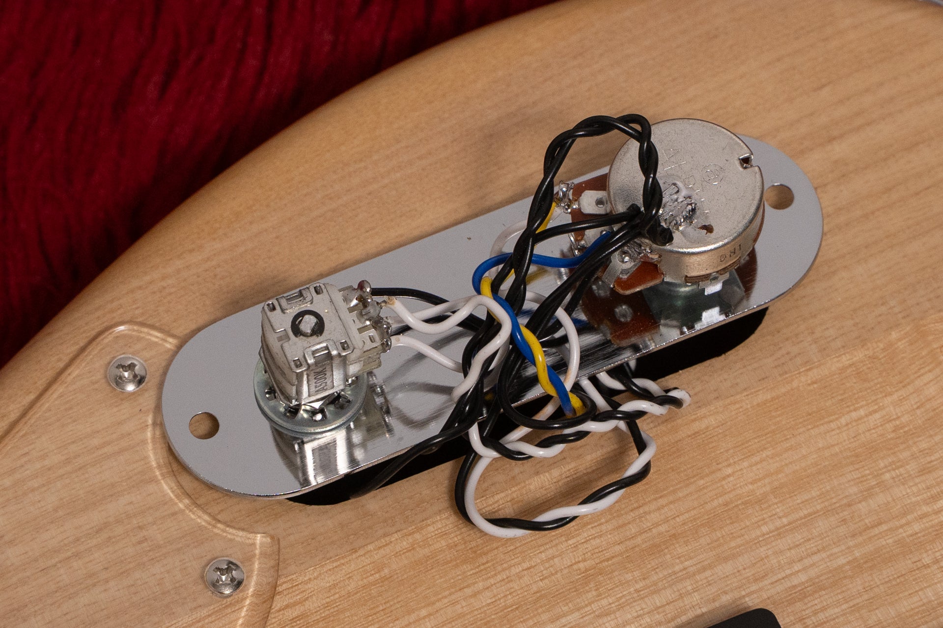 The body is made of lightweight ash and the neck is made of maple, a classic wood construction.