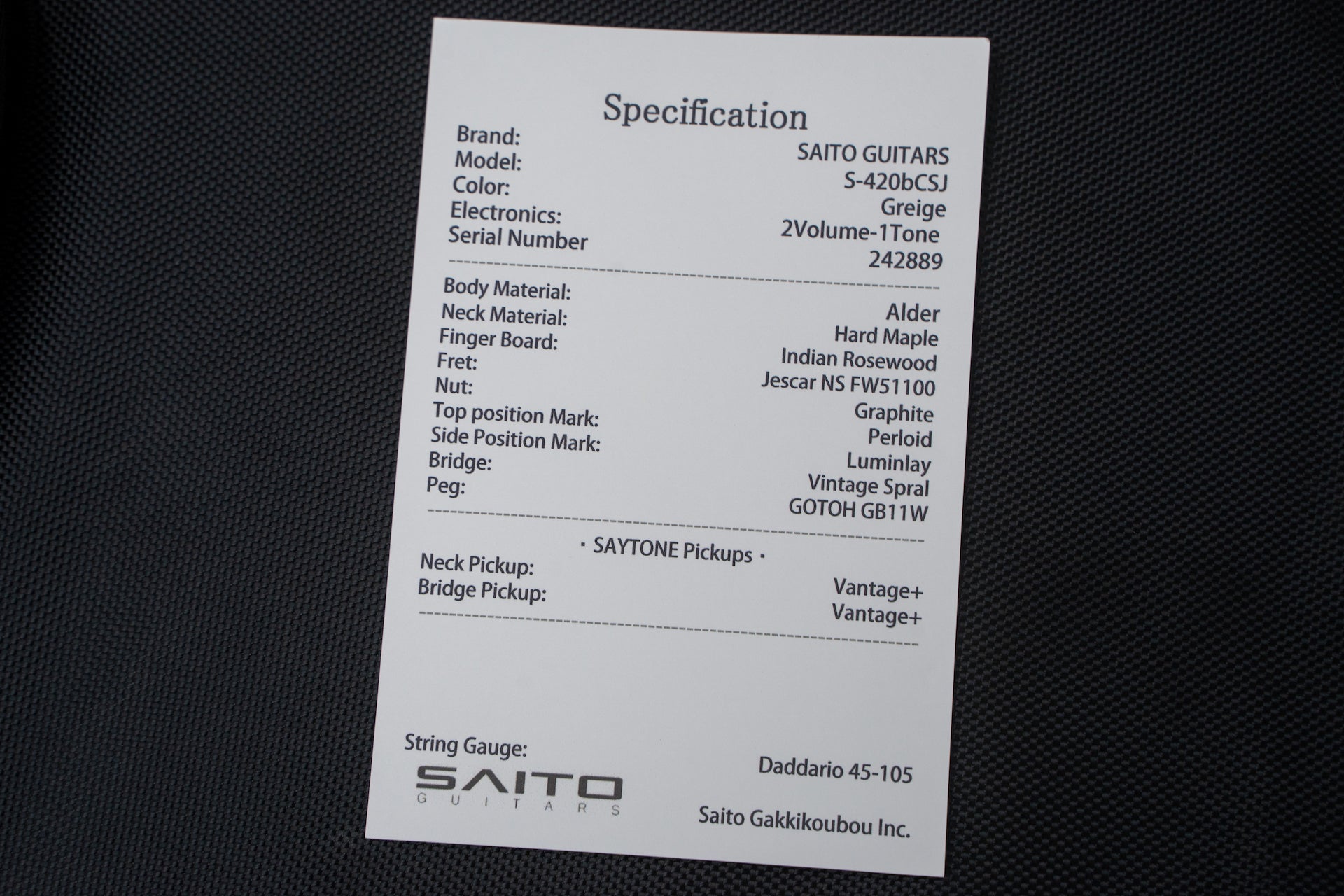 The frets are Jescar NS FW51100, and the tuning machine is GOTOH.