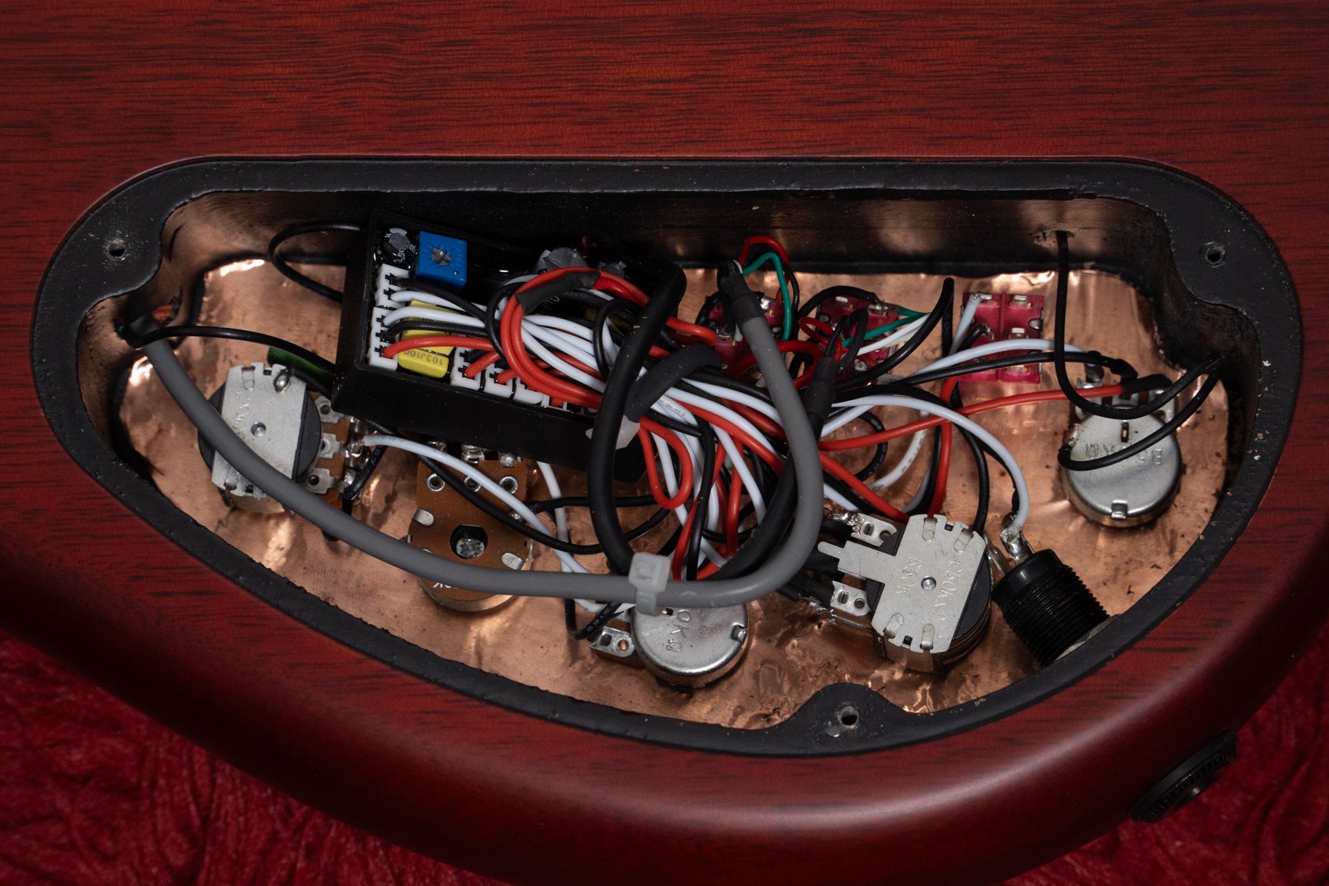 The controls are diverse yet simple: Volume/Tone (Dual Pot), Pickup Blender, Treble, Middle/Mid Frequency (Dual Pot), Bass, Mini Toggle (Active&Passive), and two Mini Toggles (Pickup Series/Split/Parallel).