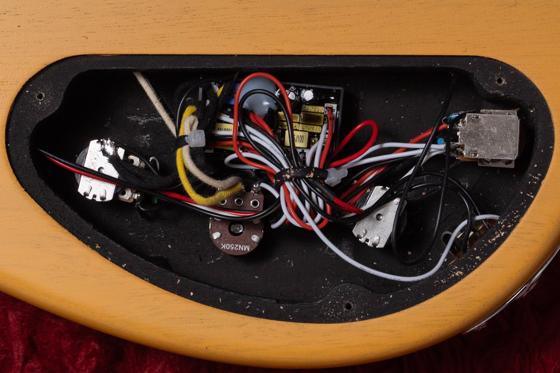 The body top is made of ash and the back is made of mahogany.