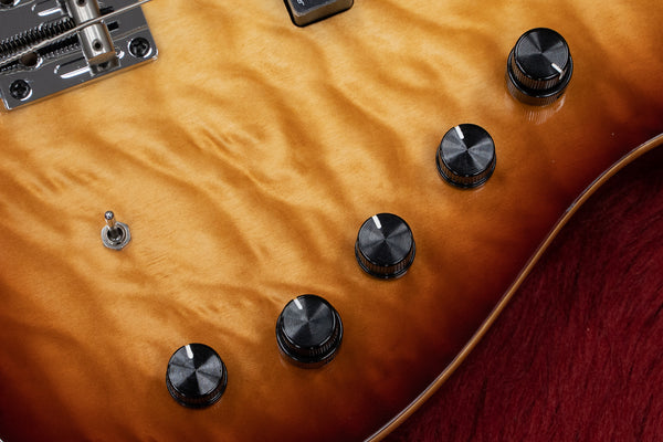 바디는 앨더백과 두꺼운 메이플, 상부에 얇은 퀼팅 메이플을 적용한 라미네이트 타입입니다.