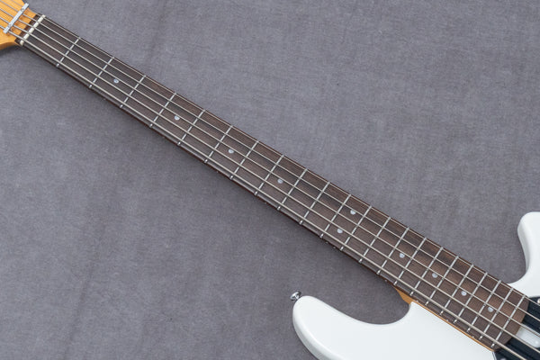 The preamp includes a mid-frequency control. Controls are Volume/Tone, Blender, Treble, Middle/Freq, Bass (passive/active switch).