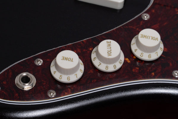 While the basic body shape is a JM type, the horns are slightly extended to improve balance when held, and the deep cutaway makes it easier to access the high positions.
