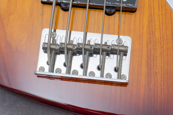Sire became famous as a brand that released basses supervised by Marcus Miller. The quality of the guitars and basses they produce is very high, and they are highly supported by people other than Marcus fans. This model is based on a jazz bass. In the style of Marcus, it is equipped with an active circuit and is finished with modern classic specs. The neck and fingerboard are made of maple. The edges of the fingerboard are nicely rounded to improve playability. Most players will have positive impressions of this specification. Ash is used for the body. The pickup positions are similar to those of Fender's 70's JB. A unique tight and powerful sound is obtained. Controls include volume, tone, balancer, bass, middle, middle frequency, treble, active-passive switch SW, and many more. It looks complicated at first glance, but from a bassist's point of view, it makes sense. The sound is tight but rich in overtones, and powerful with just the right amount of comp. This model is a must-try for those who are aiming for a Marcus-like sound, but also for those who are simply looking for a high quality jazz bass. This model is sold at a special price due to long-term inventory. This model comes with a warranty as good as new except for the appearance. SPECS BODY - Body Material: Swamp Ash Body Material: Swamp Ash Body Shape: New Marcus Miller Jazz Type Body Color: NT, TS, WB, BMR - NECK - Neck Material Neck Material: Hard Maple (Gloss Finish) Neck Shape: C-Shape Scale: 34" Neck Joint: Four Bolt Steel Square Plate Fingerboard (Rolled Edges): Hard Maple Fingerboard Radius: 7.25" Frets: 2.0 Small String Nut: 5 String - Natural Bone 46mm width Binding: 1 Ply Black Inlay: Black Block - ELECTRONICS - Pickups: Marcus Vintage Pickups: Marcus Vintage-J Revolution Set Preamp: Marcus Heritage- 3 with Middle Frequency Control Controls: Volume / Tone (Dual Pot) | Pickup Blender | Treble | Middle / Middle Frequency (Dual Pot) Treble | Middle / Middle Frequency (Dual Pot) | Bass, Mini Toggle (Active / Passive) HARDWARE - Knobs Knobs: Plastic Jazz Type in Black Bridge: Marcus Miller Vintage-S Tuning Gear: Premium Open-Gear Hardware Finish: Chrome Pick guard: Black GIB craftsmen will adjust the guitar for ease of play before delivery. Accessories : Gig bag, warranty card, wrench, pickup fence Text by Shunsuke Saga Product photo : Terama item will be packed with a hard cardboard box.