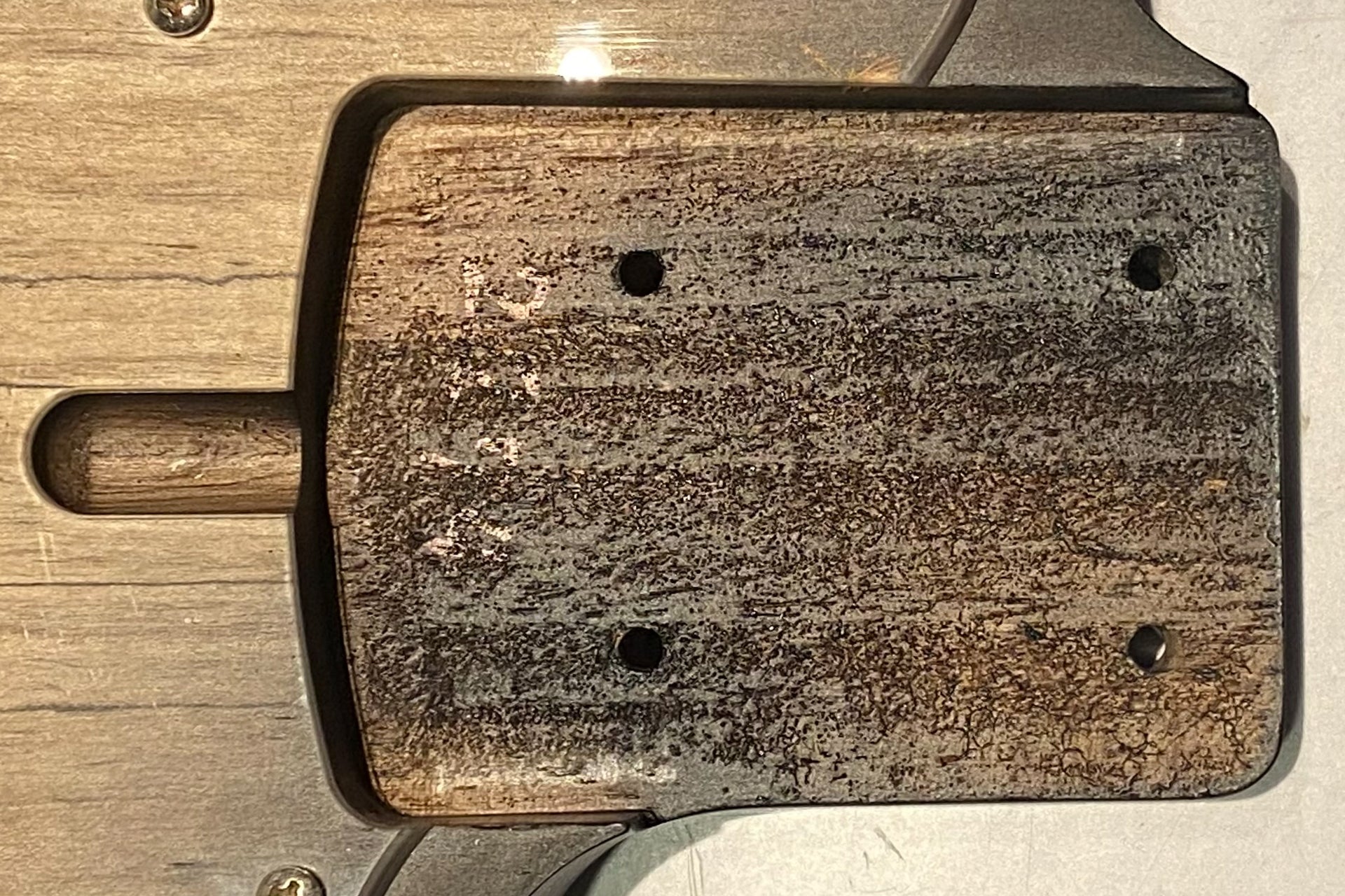 The body and finish have some minor dents and scratches, but are generally clean. There is a 15.0mm crack behind the first fret of the neck, but it does not currently interfere with playability.