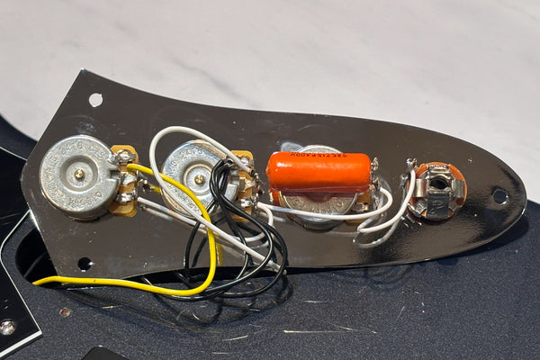 Pots are CTS, capacitor is Orange Drop, and jack is Puretone.