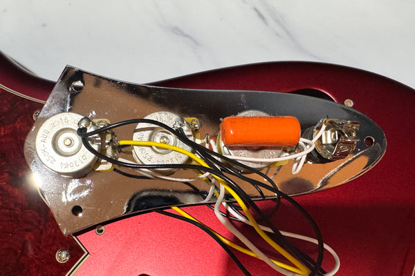 The pots are CTS, the capacitors are Orange Drop, and the jack is Puretone, so it is perfect.