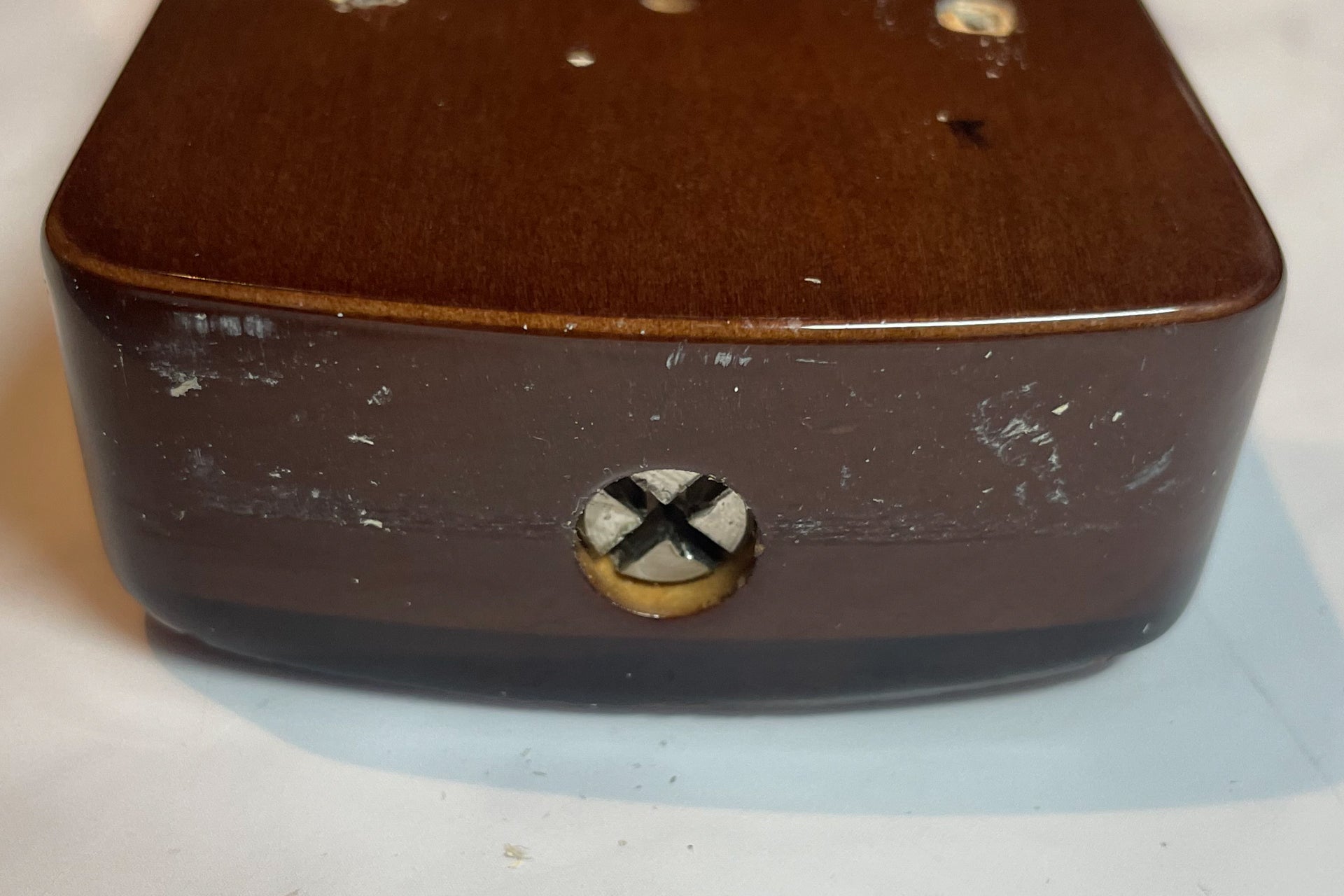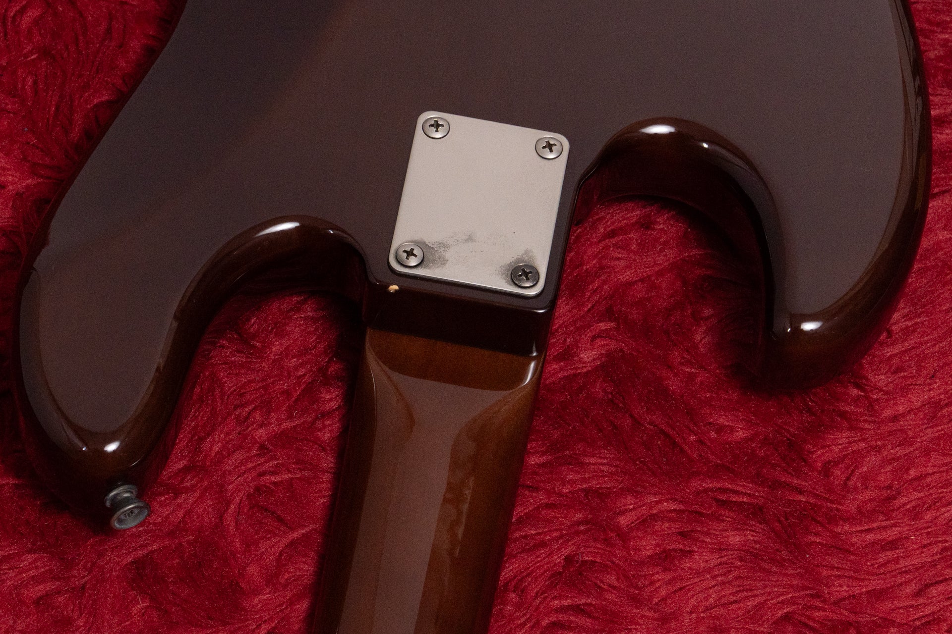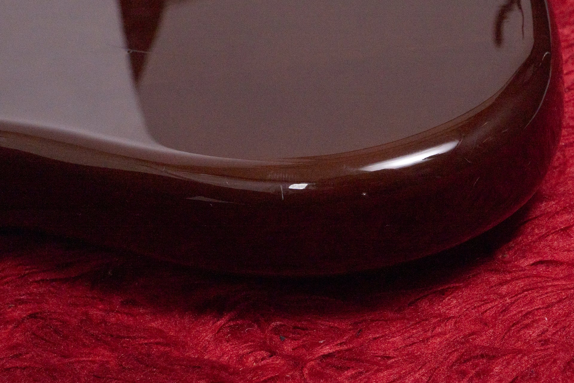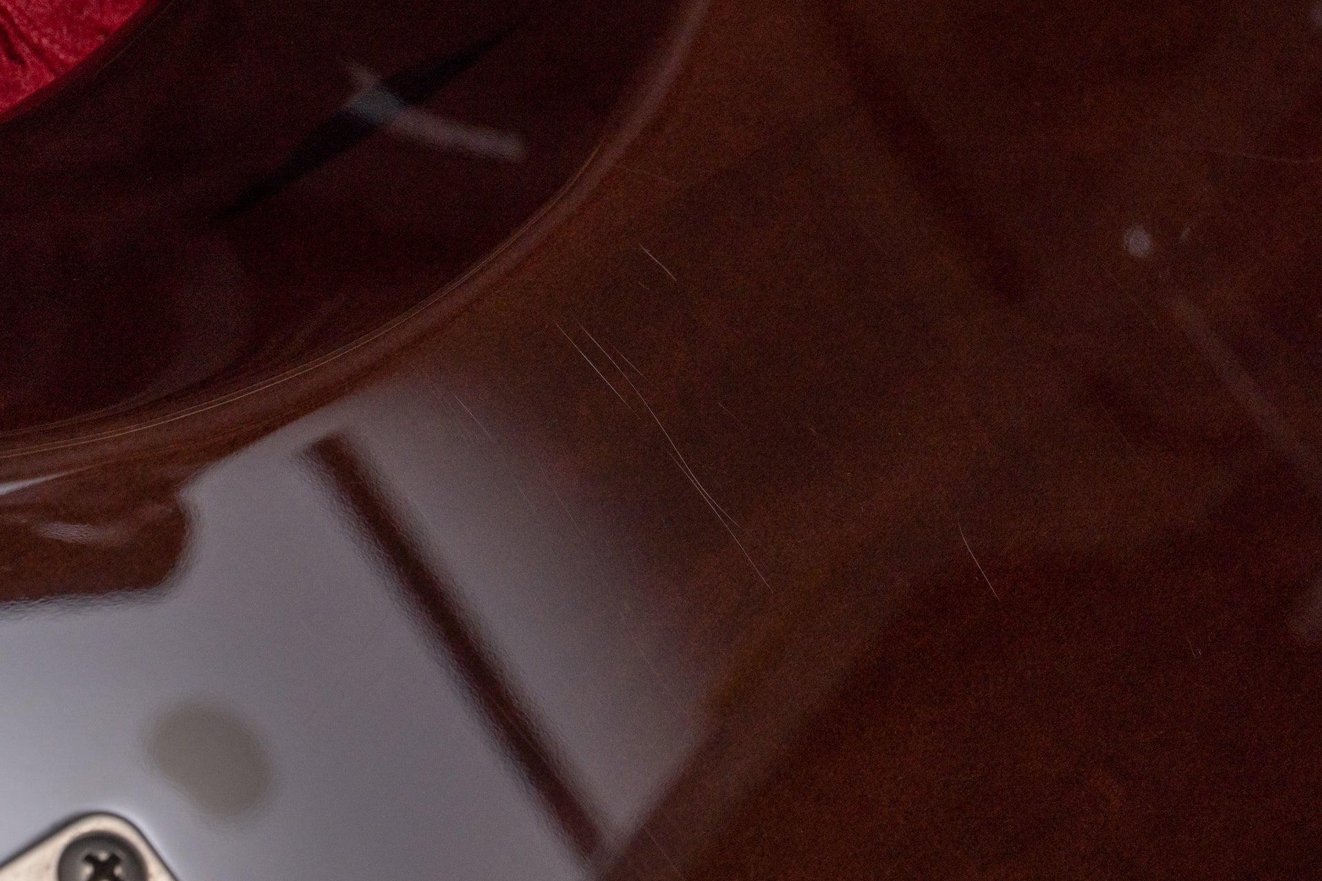 The body and finish show minor scratches and dents. There is also paint peeling near the neck joint.