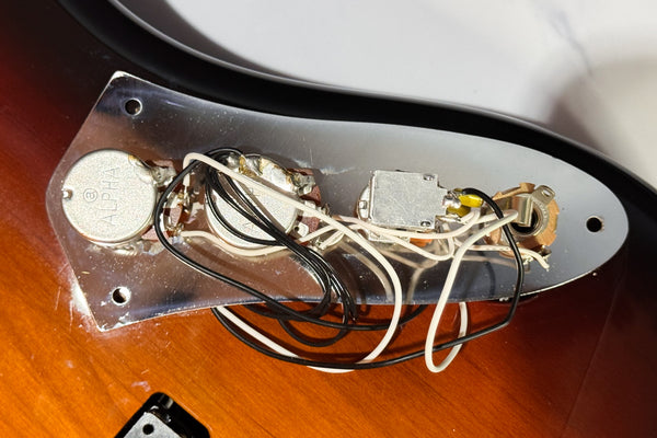 The body is made of Alder and the fingerboard is Rosewood, a classic wood composition.