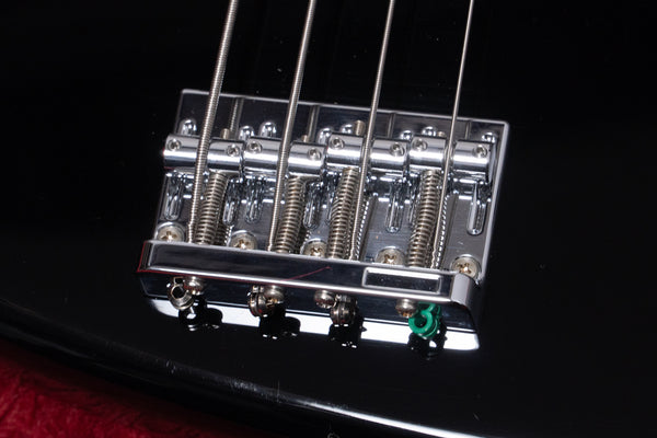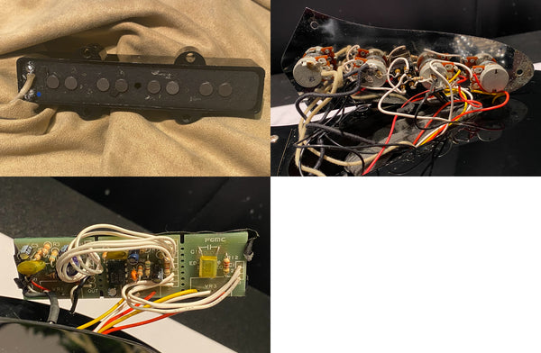 Controls: Neck pickup volume, bridge pickup volume, active/passive switch, treble, bass