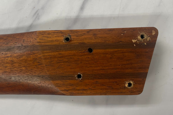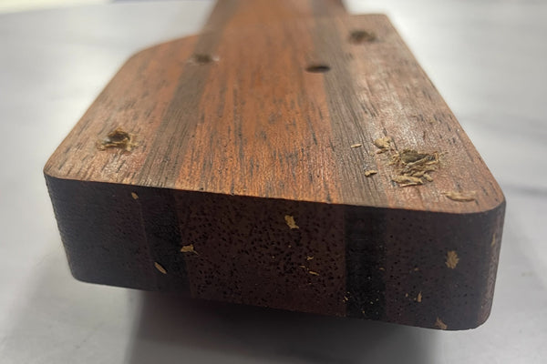 The bridge is designed to prevent strings from being threaded through the top of the bridge.