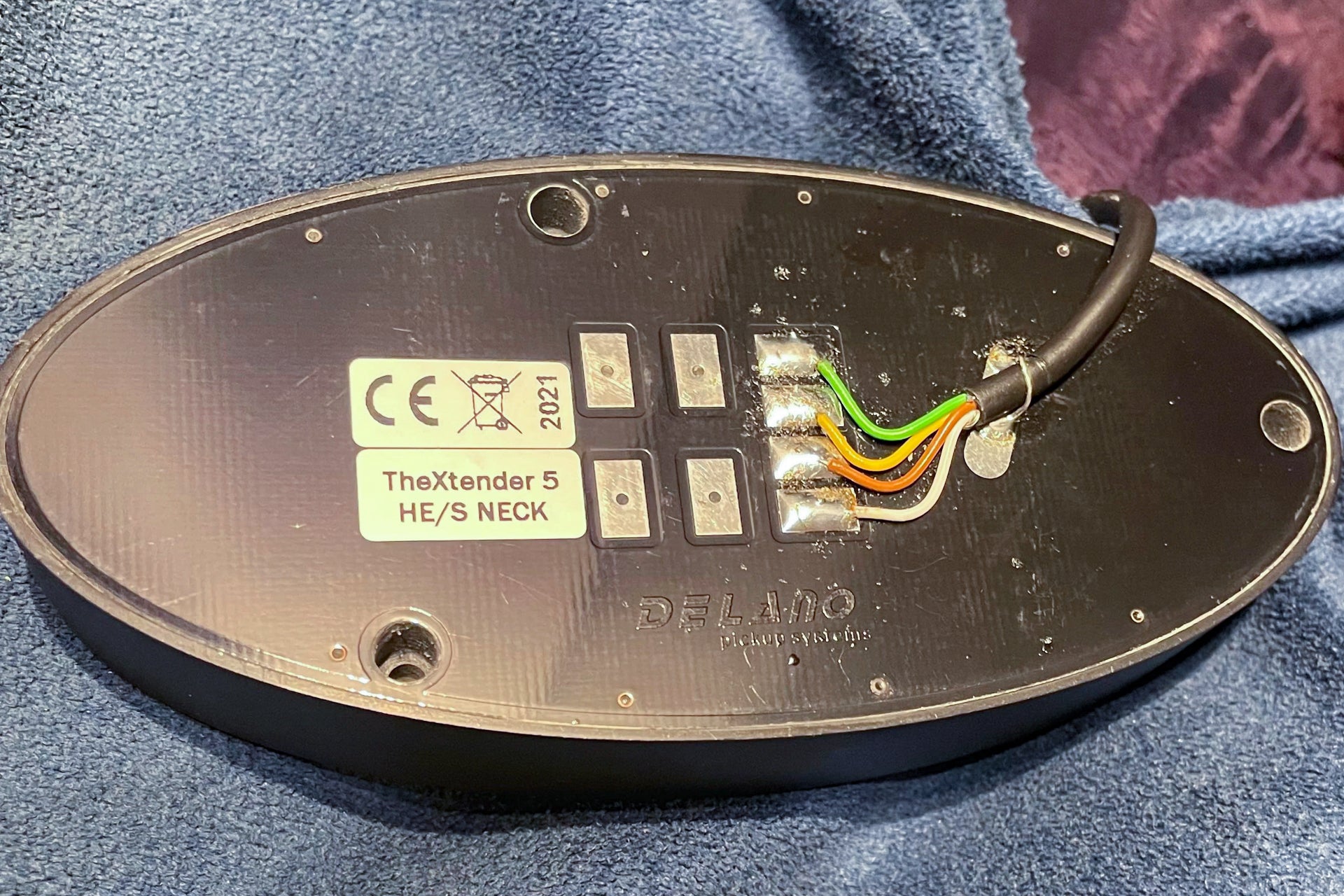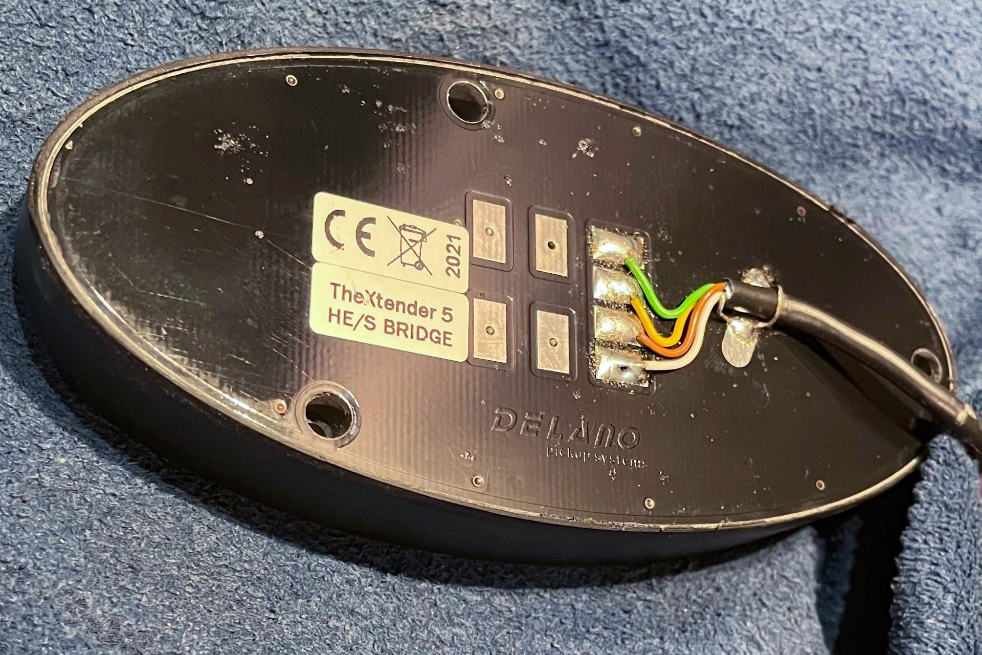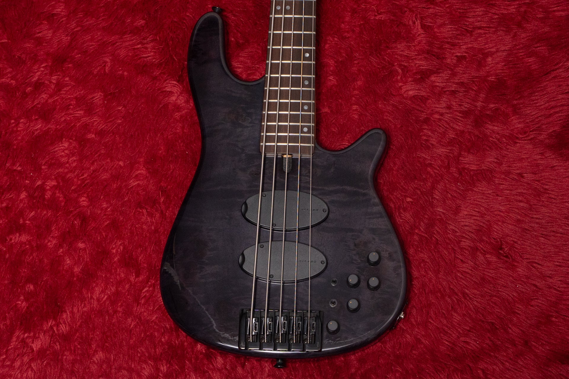 The pickups are a Delano Xtender 5 HE/S Set, and the preamp is a modern Darkglass Tonecapsule.